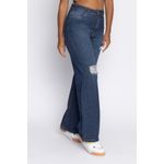 Calça Feminina Wide Leg Destroyed Jeans Escuro