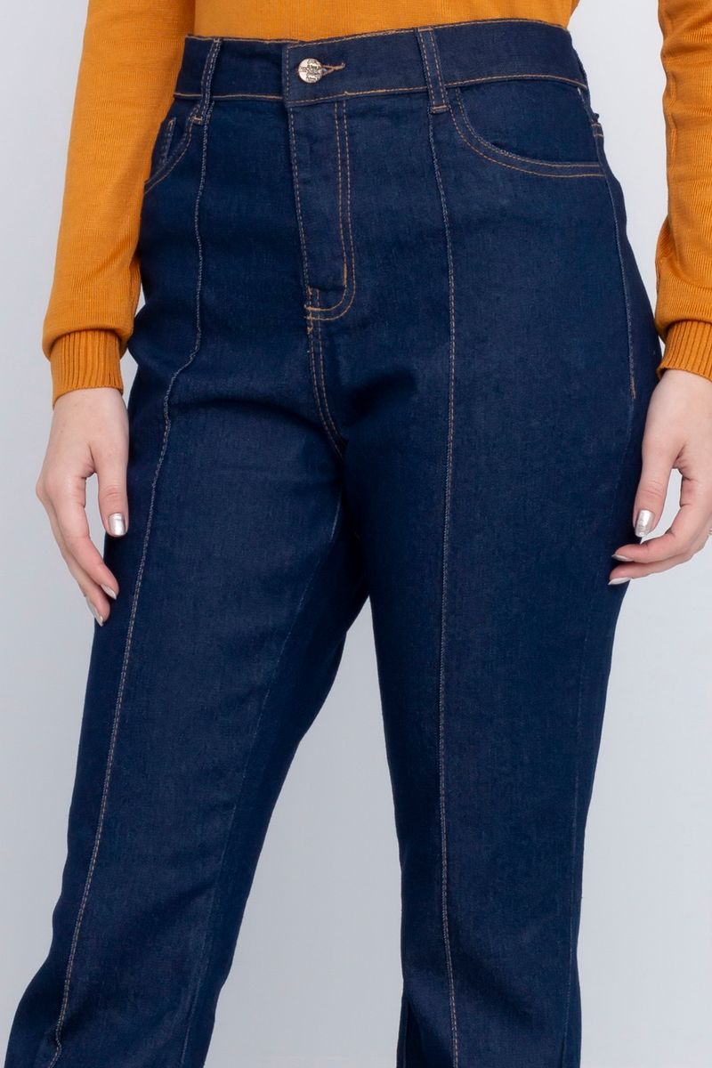 Modelo flare em jeans escuro, com caimento impecável para looks elegantes.