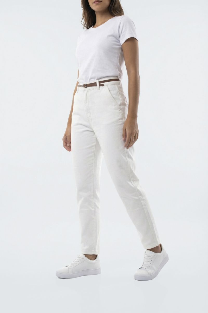 Combine sua Calça Cenoura Feminina Off White com camiseta básica branca para um visual monocromático e clean. Adicione um cinto marrom fino e tênis casuais. Para looks mais elaborados, use blusas estampadas ou camisas sociais, finalizando com sandálias ou scarpins. Crie sua moda!