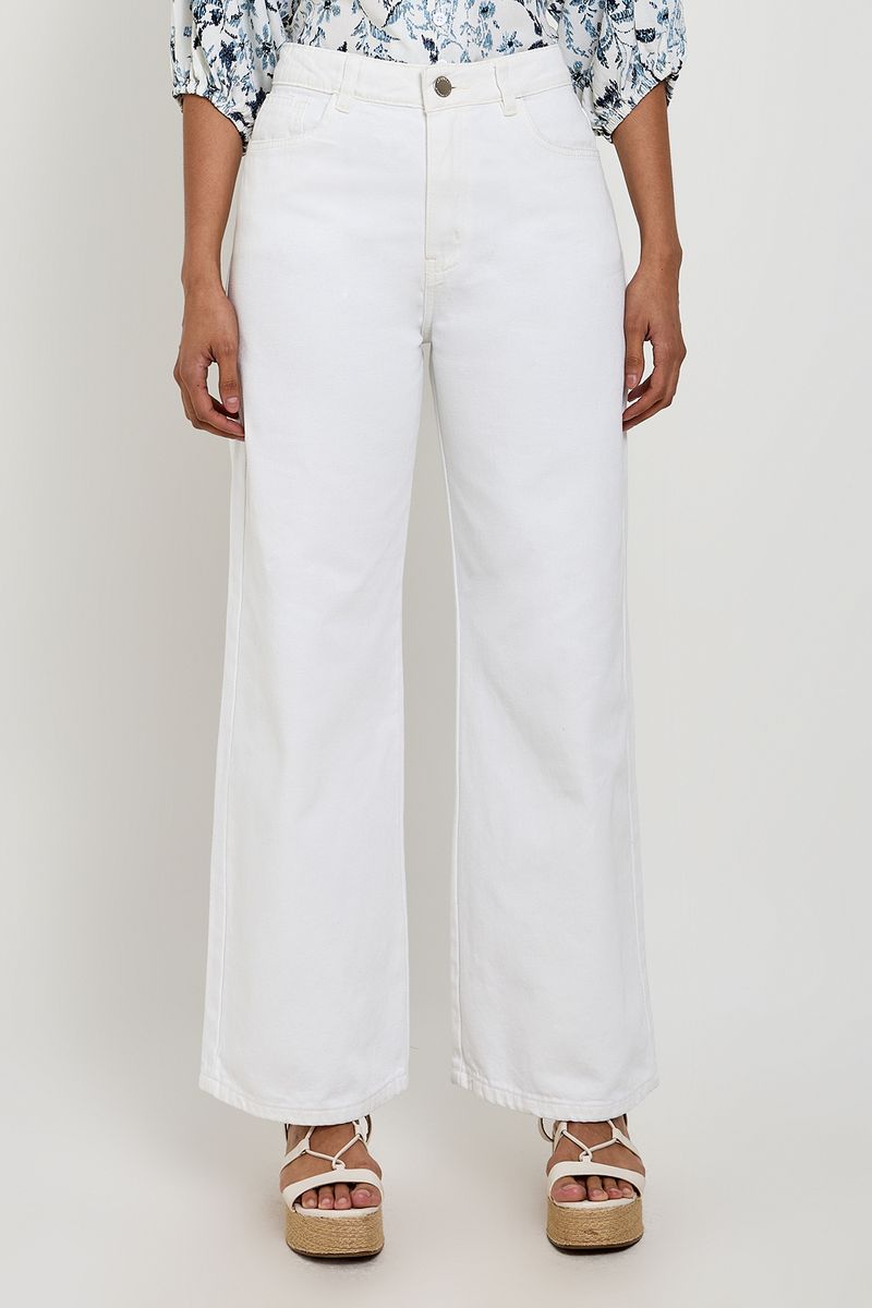 Calça Feminina Wide Leg Sarja Off White Caedu: Conforto e Estilo Moderno