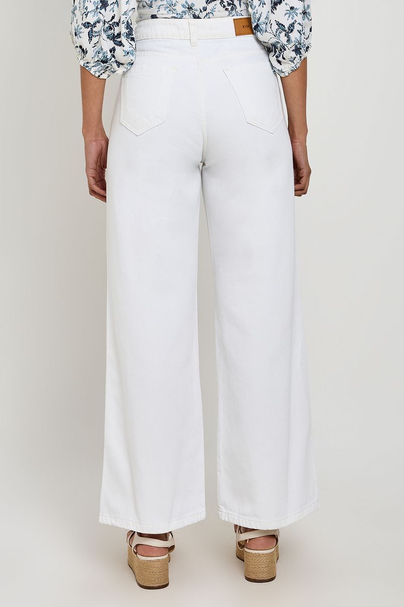 Calça Feminina Wide Leg Sarja Off White Caedu. Esta peça de
