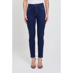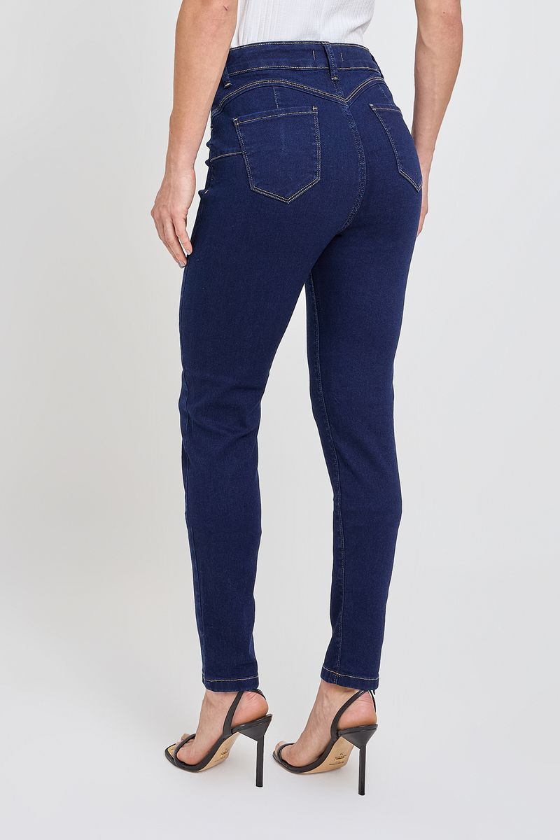 A Calça Jeans Feminina Skinny Modeladora Azul Escuro Caedu realça sua silhueta. Em denin de algodão, oferece conforto e caimento. A pala coração valoriza as curvas, ideal para um visual moderno na moda.