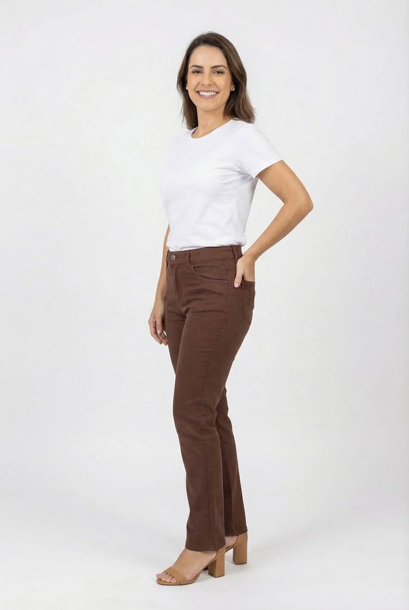 A Calça Feminina Reta Marrom Café da Caedu é a peça essencial da sua nova coleção de outono inverno. Com um corte reto que valoriza a silhueta, esta calça em sarja oferece conforto e um toque de alta moda. Sua tonalidade marrom café, parte dos elegantes tons terrosos, garante um visual sofisticado e moderno para qualquer ocasião, elevando seu estilo com facilidade.
