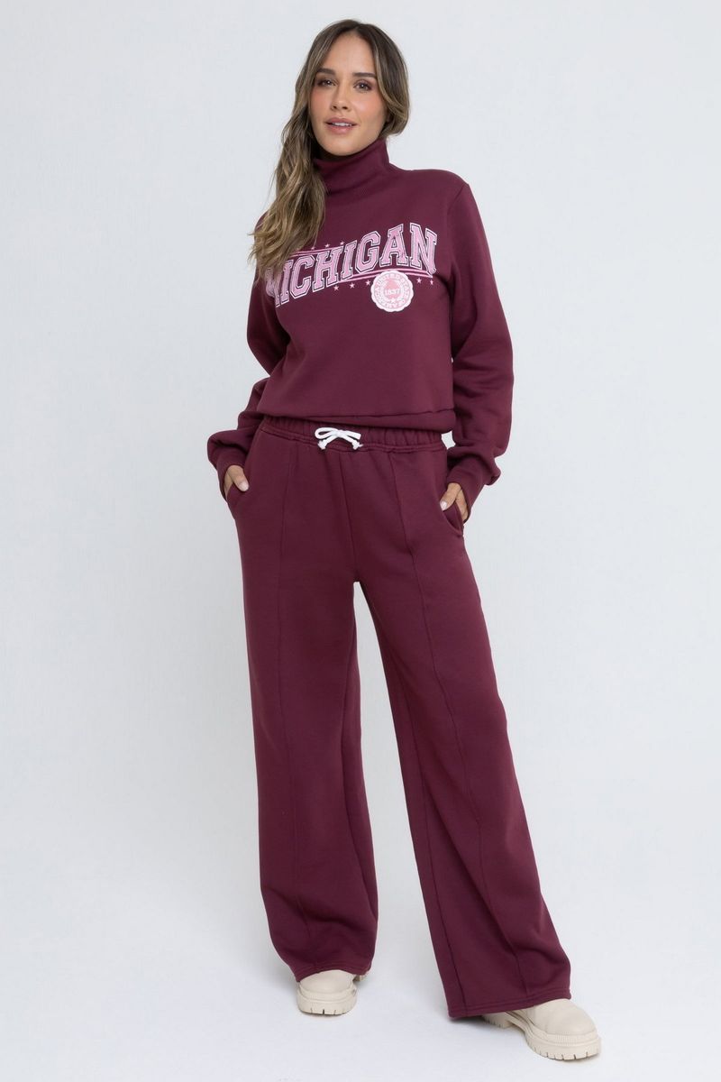 Calça Feminina Wide Leg Moletom Vermelho Escuro