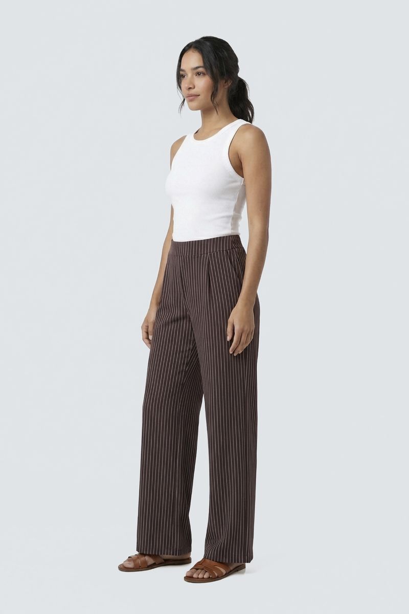 Eleve seu estilo com a Calça Feminina Pantalona Wide Leg Risca de Giz Marrom Médio Caedu. Confeccionada em 100% poliéster, oferece conforto, caimento impecável e um toque de sofisticação. Seu design moderno com risca de giz e modelagem ampla é ideal para criar looks sofisticados e cheios de moda, valorizando sua silhueta.