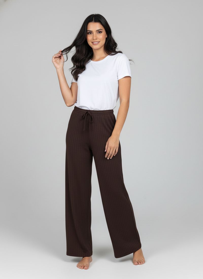 VestuárioFemininocalcasCalca fem rom wide leg textura marrom marrom escuro