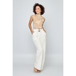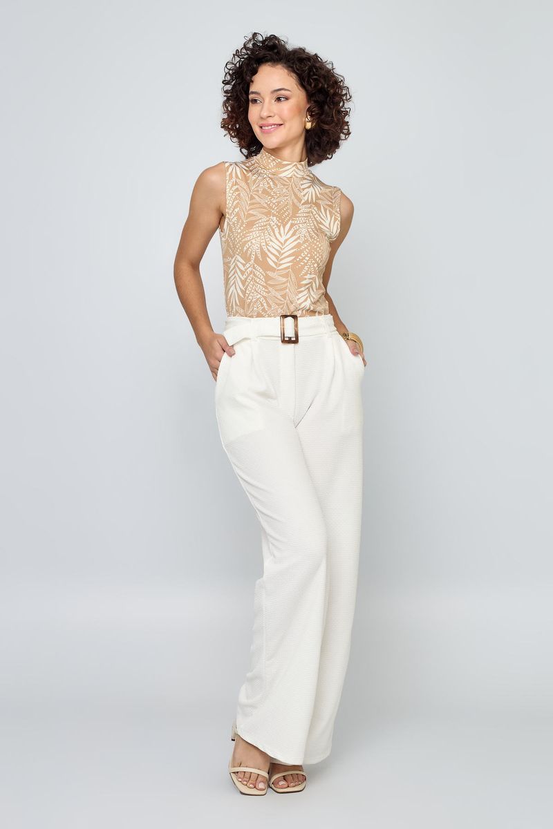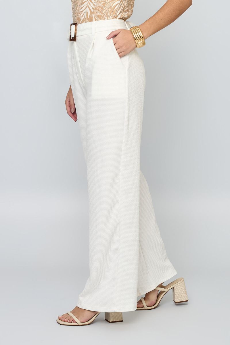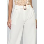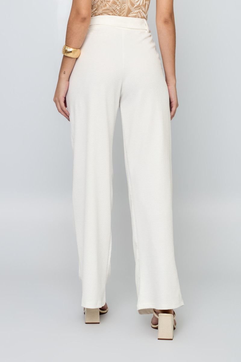 Calça feminina casual em sarja off white, com passantes, perfeita para compor looks descontraídos e estilosos.