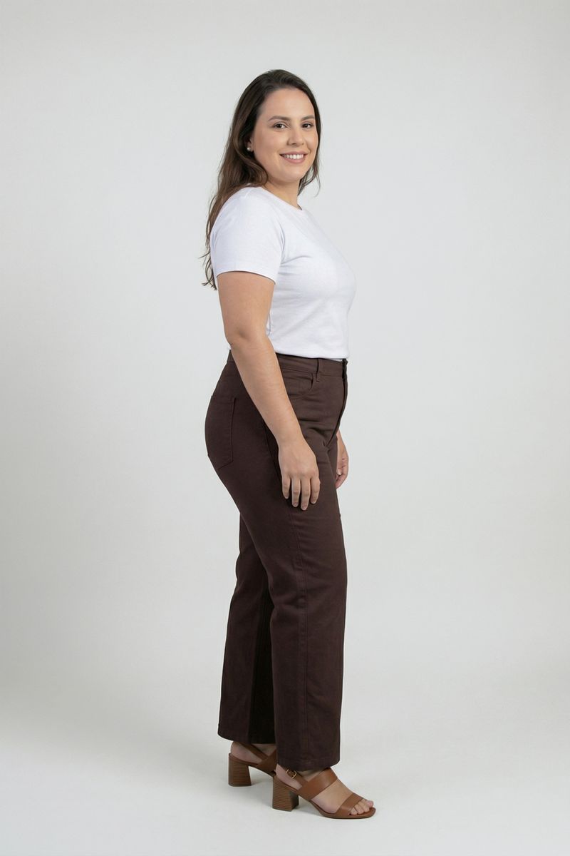 Ideal para o dia a dia, a Calça Jeans Reta Conforto Marrom Médio se encaixa em almoços casuais, passeios, encontros com amigos ou ambientes de trabalho descontraídos, sempre com elegância e conforto.