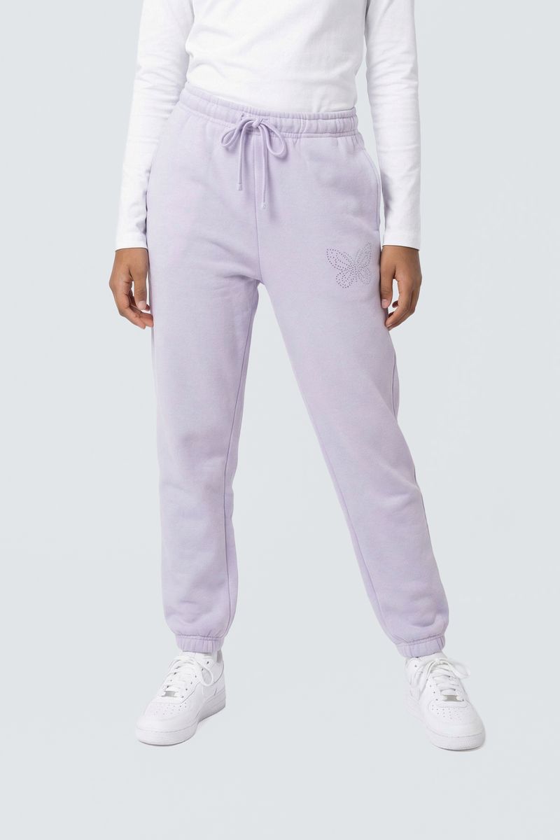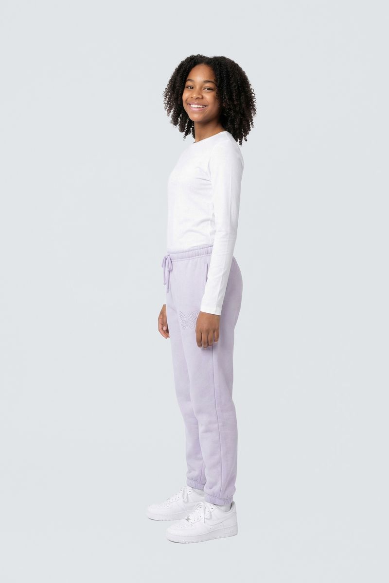 Calça Jogger Juvenil Lilás com Bordado de Borboleta Caedu