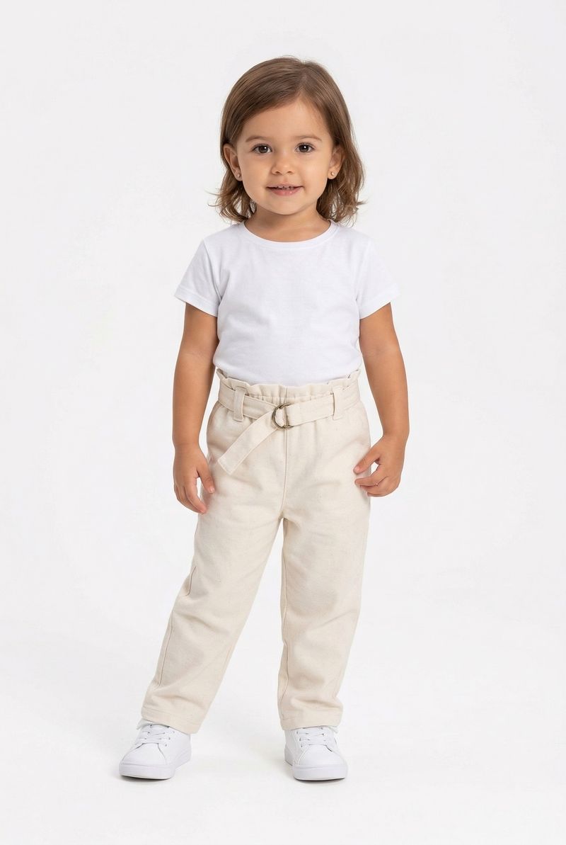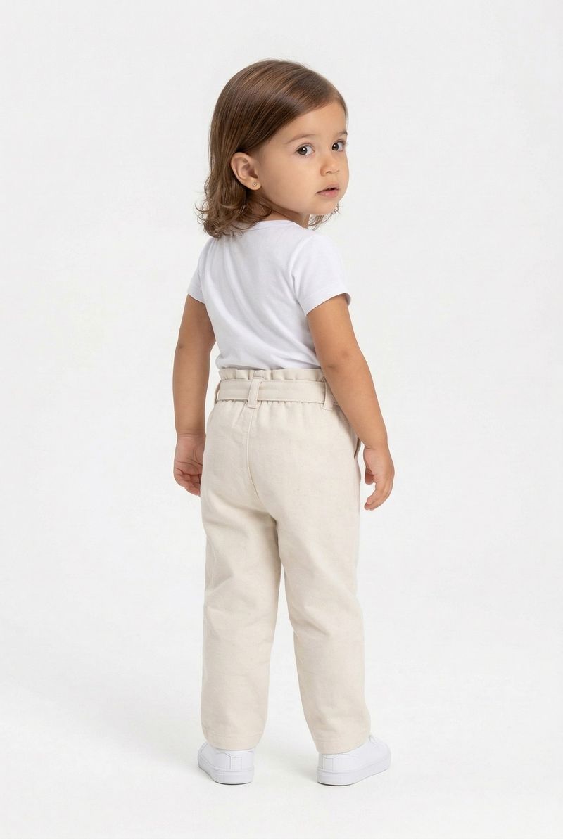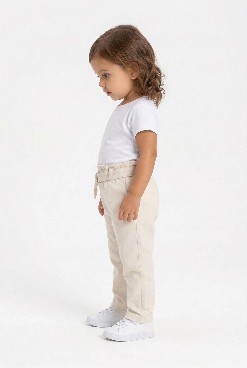 A Calça Infantil Clochard Bege Claro com Cinto Caedu é a escolha perfeita para um visual moderno e confortável. Com seu cós alto e detalhe franzido estilo 'paper bag', esta peça em tom terroso eleva o nível de moda, garantindo um look elegante e versátil para as pequenas. Ideal para acompanhar as tendências da moda infantil.