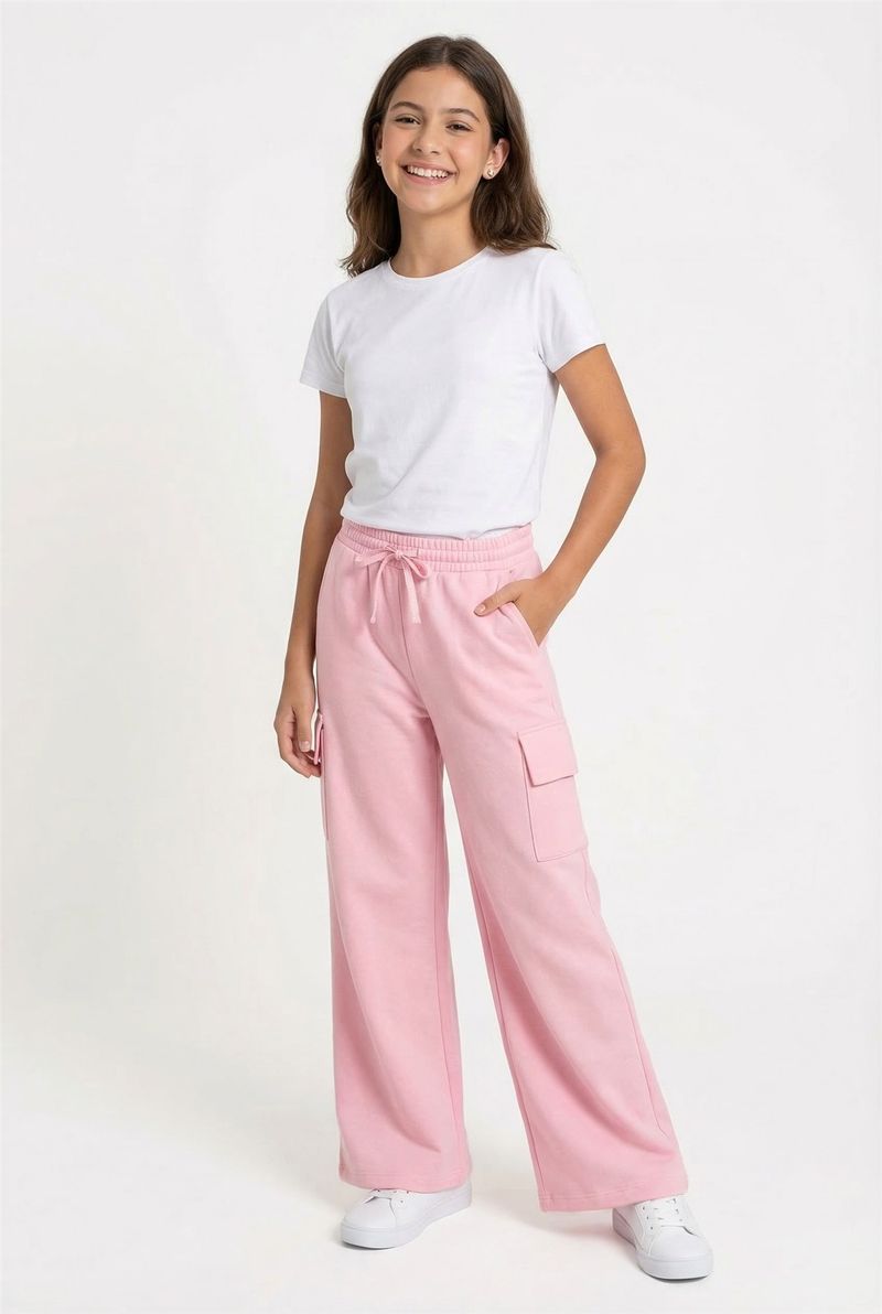 Descubra a Calça Wide Leg Cargo Infantil Rosa Suave Caedu, perfeita para as pequenas fashionistas. Confeccionada em moletom com felpa, oferece conforto e estilo com seu corte largo e bolso cargo. Uma roupa versátil para o dia a dia.