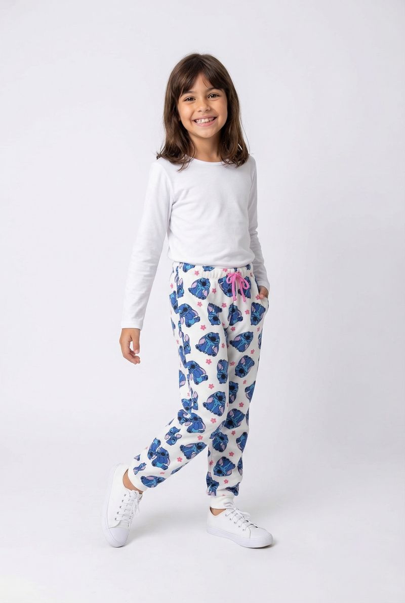 A Calça Jogger Infantil Caedu oferece conforto e estilo para as pequenas fashionistas. Com estampa vibrante do Stitch e flores, cós elástico ajustável e bolsos práticos, esta peça em moletom com felpa é ideal para o dia a dia, garantindo diversão e liberdade de movimento.