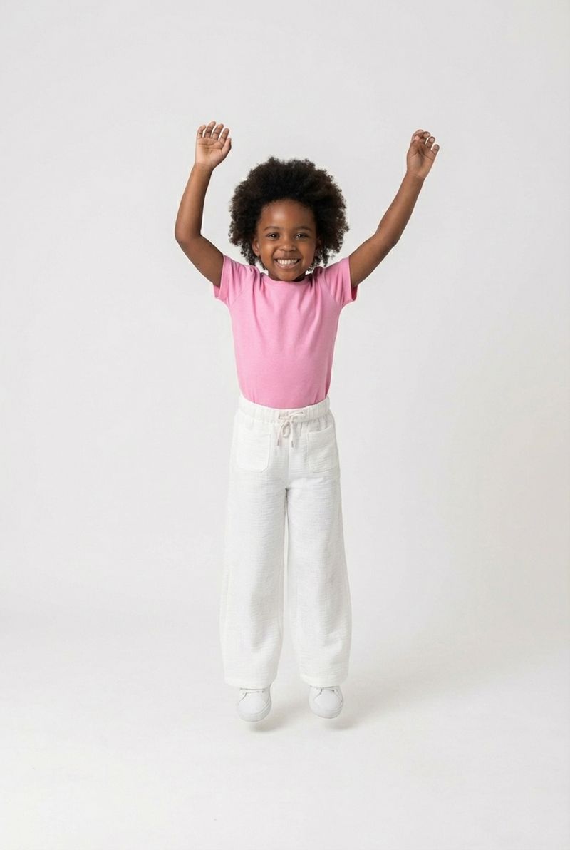 Perfeita para passeios no parque, encontros com amigos ou momentos de lazer em casa. Esta calça infantil é versátil para diversas atividades, garantindo conforto e um visual encantador em qualquer ocasião.