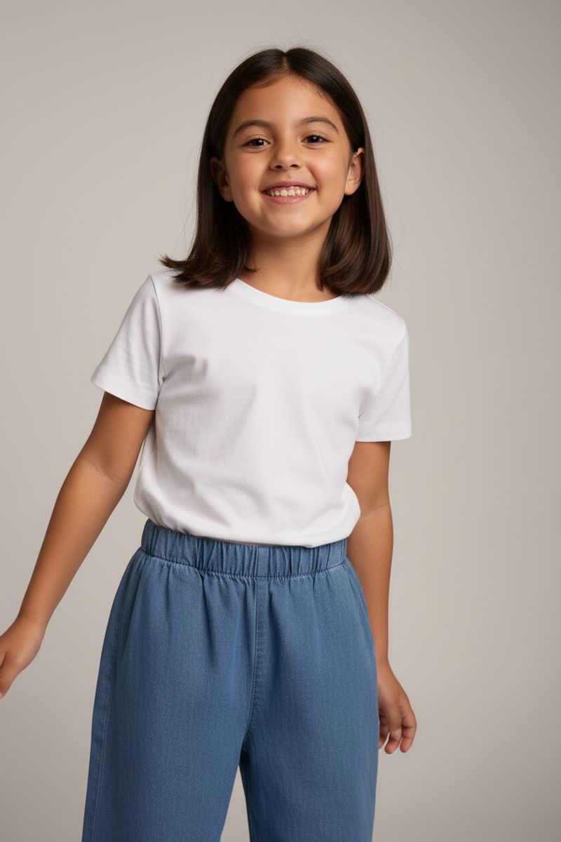 Combine a Calça Jeans Wide Leg Infantil com blusas básicas ou estampadas para um visual despojado. Para um toque mais estiloso, adicione um cropped e tênis coloridos. Em dias mais frescos, uma jaqueta leve completa o look. Sandálias ou sapatilhas também são ótimas opções para um passeio confortável.