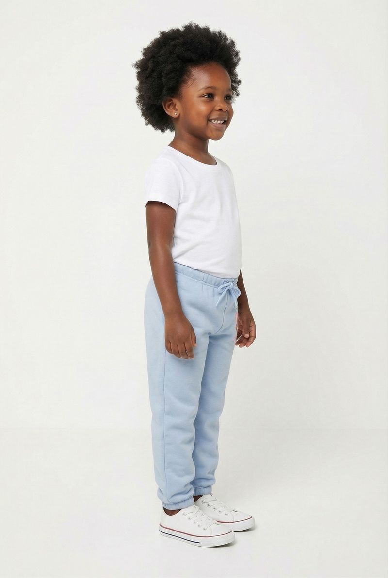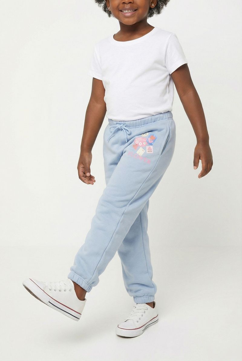 A Calça Jogger Infantil Caedu é a escolha ideal para conforto e estilo. Em moletom com felpa azul bebê, sua estampa flower vibrante garante um visual alegre. Esta roupa infantil da Caedu proporciona liberdade de movimento com cós e punhos elásticos.