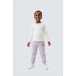 Combine esta calça jogger lilás com uma blusa branca lisa para um visual clássico e leve, ou ouse com camisetas estampadas para um estilo mais divertido. Nos pés, tênis brancos ou coloridos complementam perfeitamente. Para dias mais frescos, adicione uma jaqueta leve ou um moletom por cima, criando um look versátil e cheio de personalidade para sua criança.