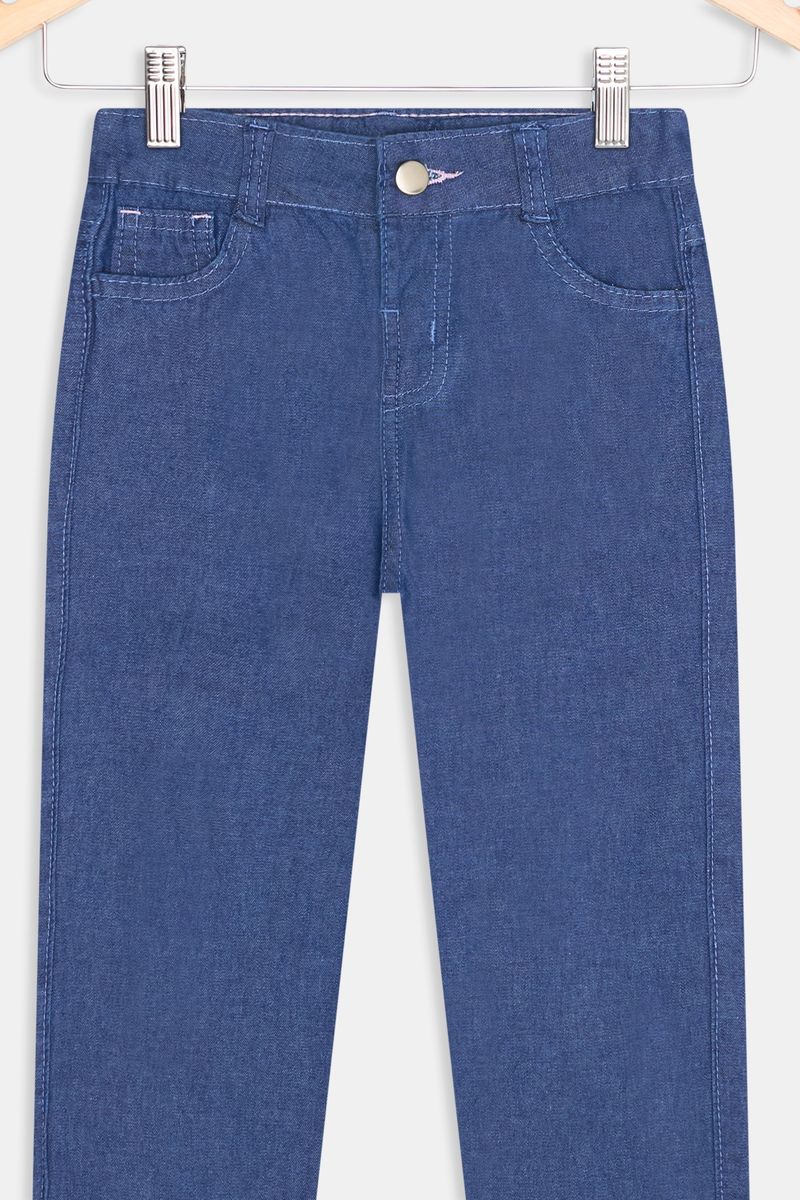 A Calça Jeans Ballone Azul Escuro Caedu é a peça essencial para o público infantil. Confeccionada em denim (90% poliéster, 10% algodão), oferece conforto e durabilidade. Seu corte moderno garante estilo e liberdade para todas as aventuras. Uma roupa versátil para a moda infantil.