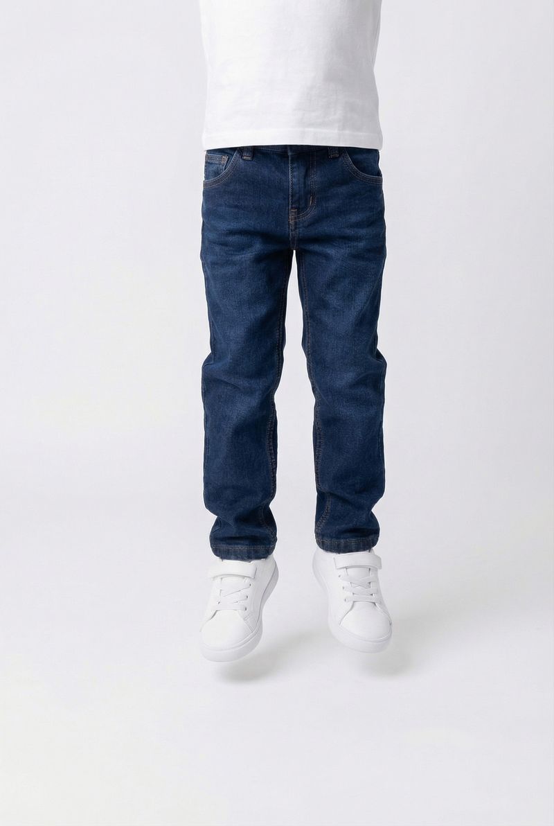 Descubra a Calça Jeans Reta Infantil Caedu, perfeita para o dia a dia. Confeccionada em 100% algodão, oferece conforto e liberdade para os pequenos. Seu design moderno e a cor azul escuro são ideais para a nova coleção de outono inverno, garantindo um visual cheio de estilo e durabilidade em denim.