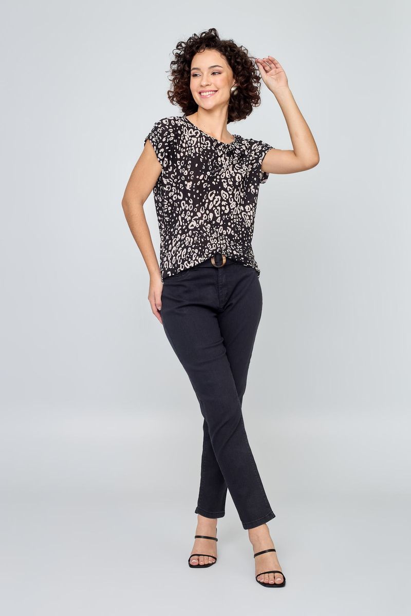 Calça jeans feminina cigarette preta, com cinto, para um look elegante e moderno.