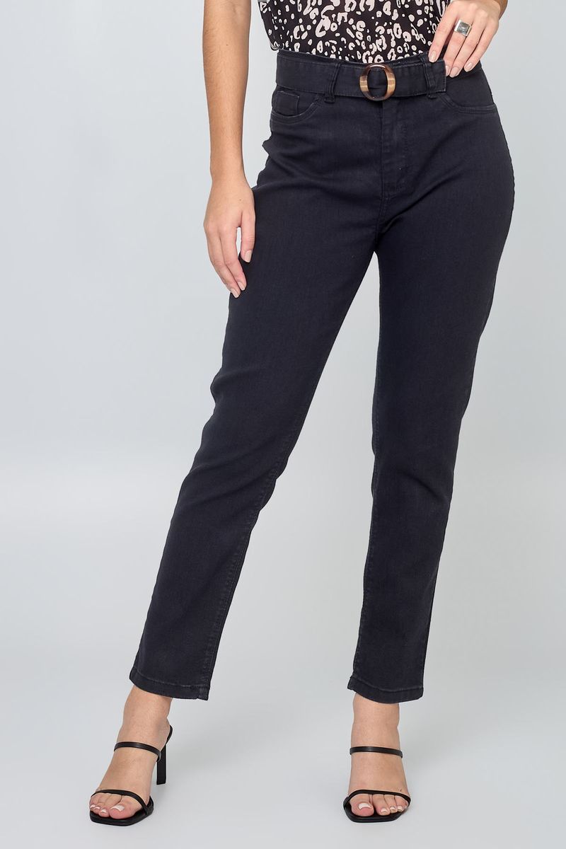 Calça Jeans Feminina Cigarette com Cinto Preta