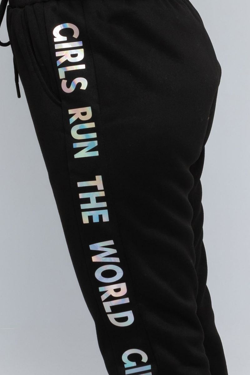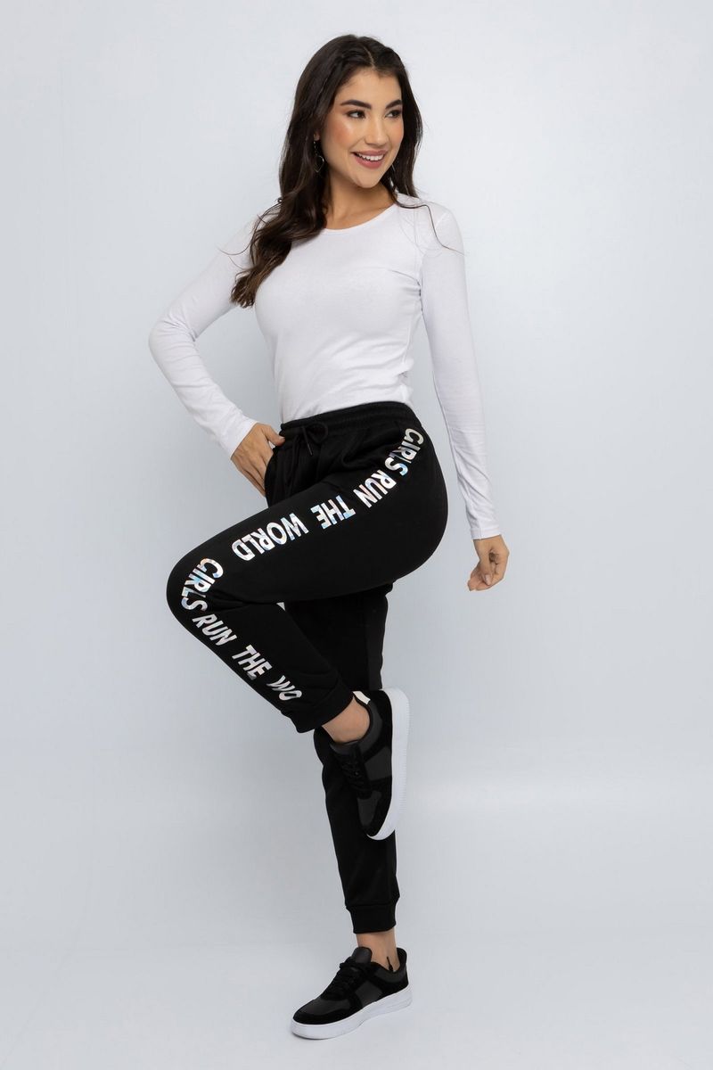 Calça Jogger Feminina em Fleece com Estampa World Preta