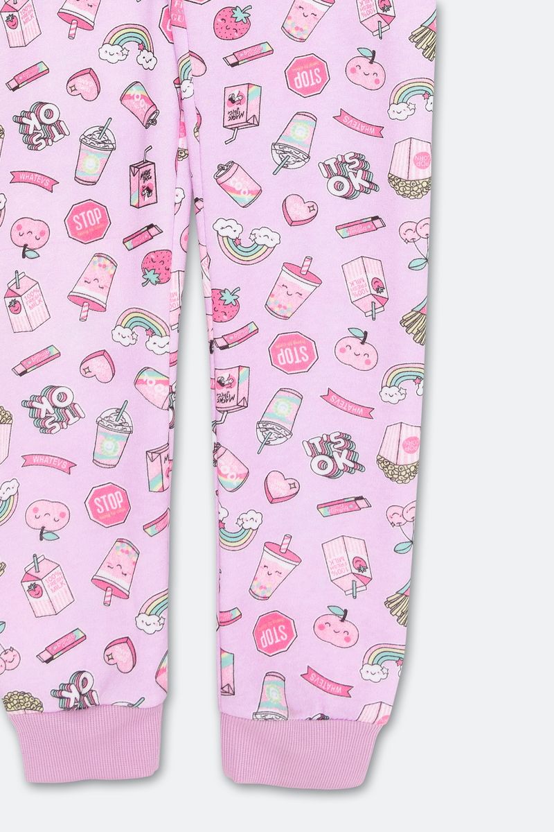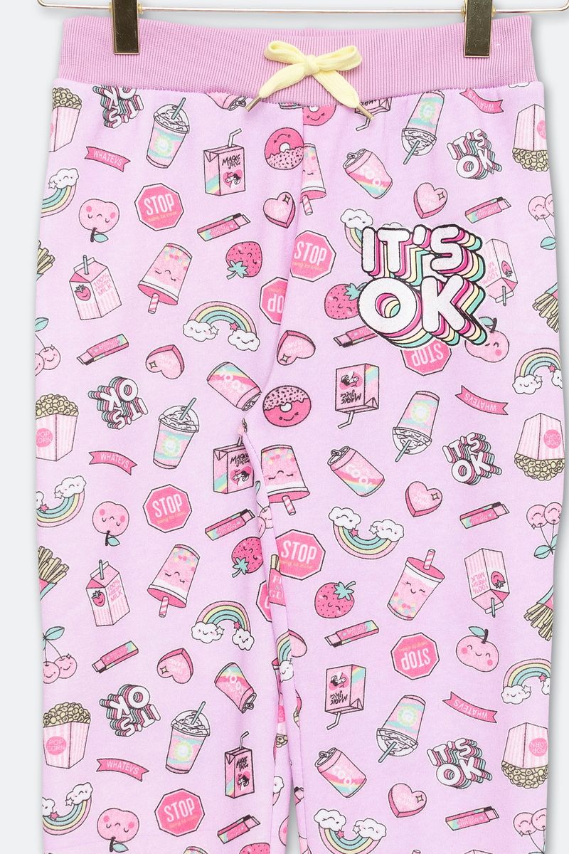 Estampa charmosa em tom lilás nesta calça em fleece, perfeita para manter o estilo nos dias frios.