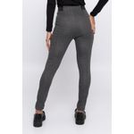 Calça legging feminina na cor preta. A peça possui elástico no cós e caimento justo.