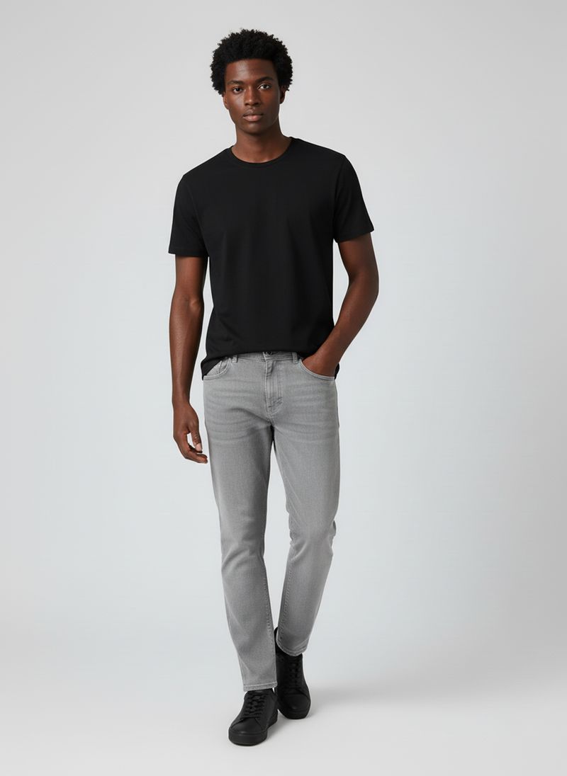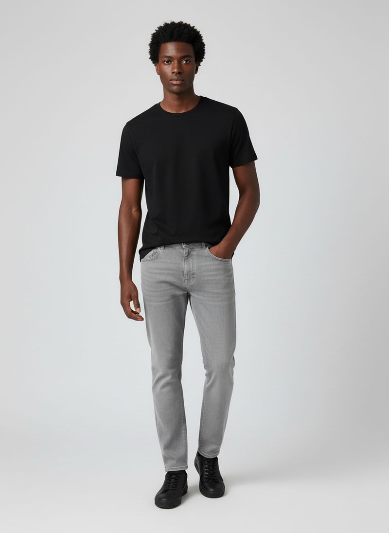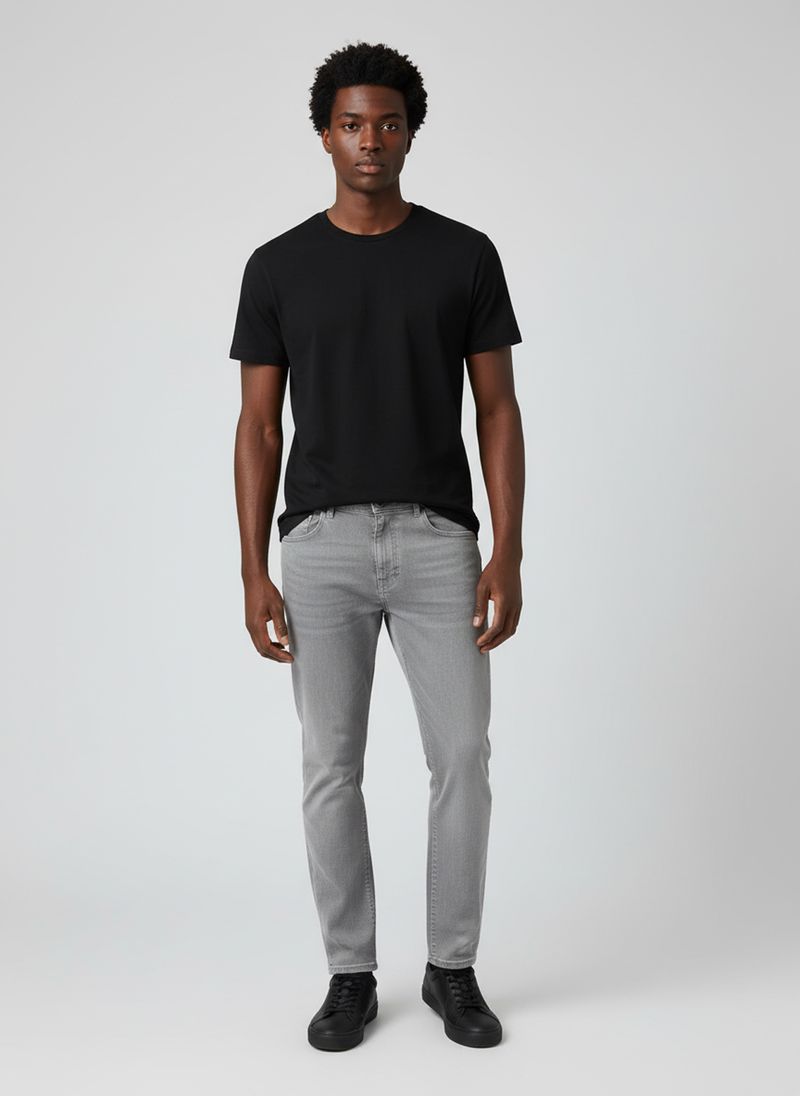 Combine sua Calça Jeans Masculina Skinny Cinza Claro Moderna com uma camiseta preta básica para um look minimalista e despojado. Para um toque mais casual, adicione tênis de cadarço. Experimente também com camisas de botão ou jaquetas leves para criar composições versáteis e cheias de estilo.