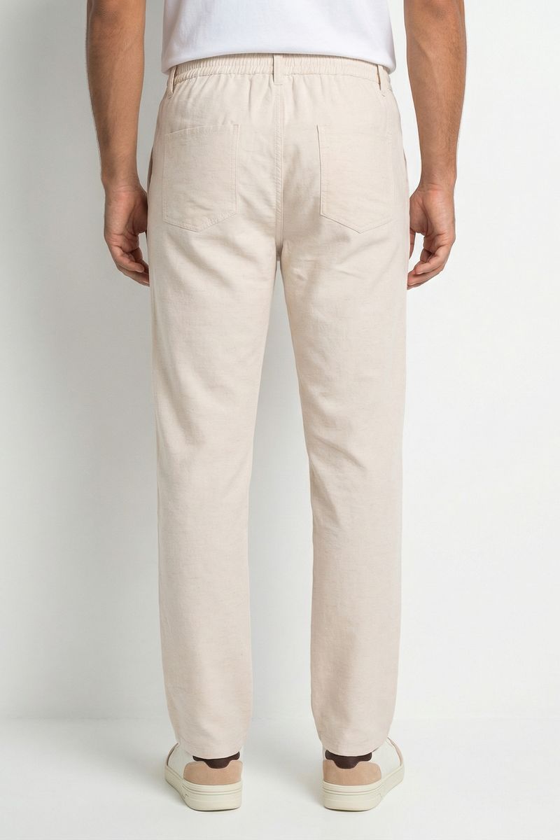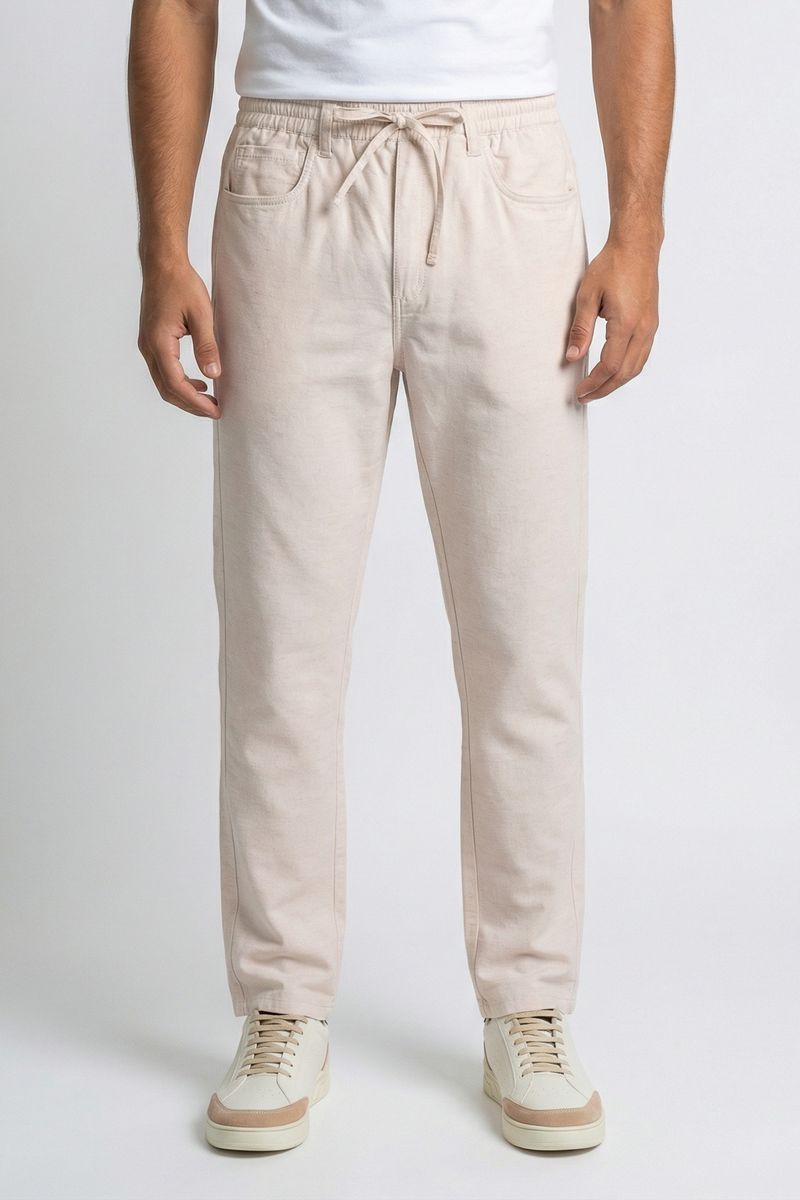 Experimente a Calça Masculina de Linho Off White Caedu, a peça ideal para quem busca conforto e estilo descontraído. Confeccionada em linho de toque suave, possui cós elástico com cordão ajustável e bolsos laterais, perfeita para um visual casual e moderno.