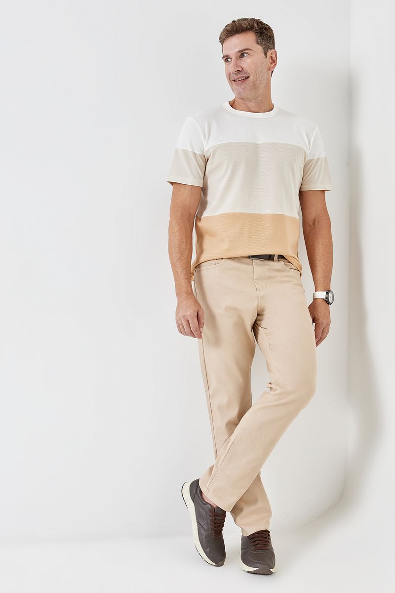 Combine sua calça bege claro com camisas polo para um visual casual chic, ou com camisetas estampadas para um estilo mais despojado. Para um toque sofisticado, use com um suéter de tom terroso e sapatos de couro. Complete com tênis brancos para um look moderno e confortável, ou sapatênis para um ar mais arrumado.