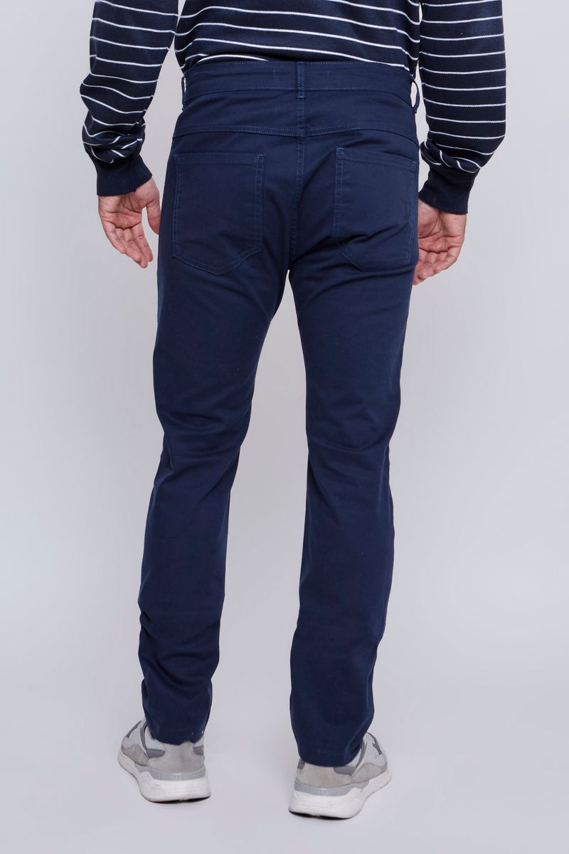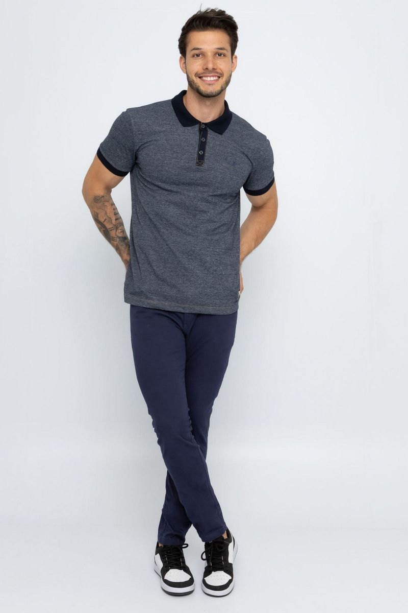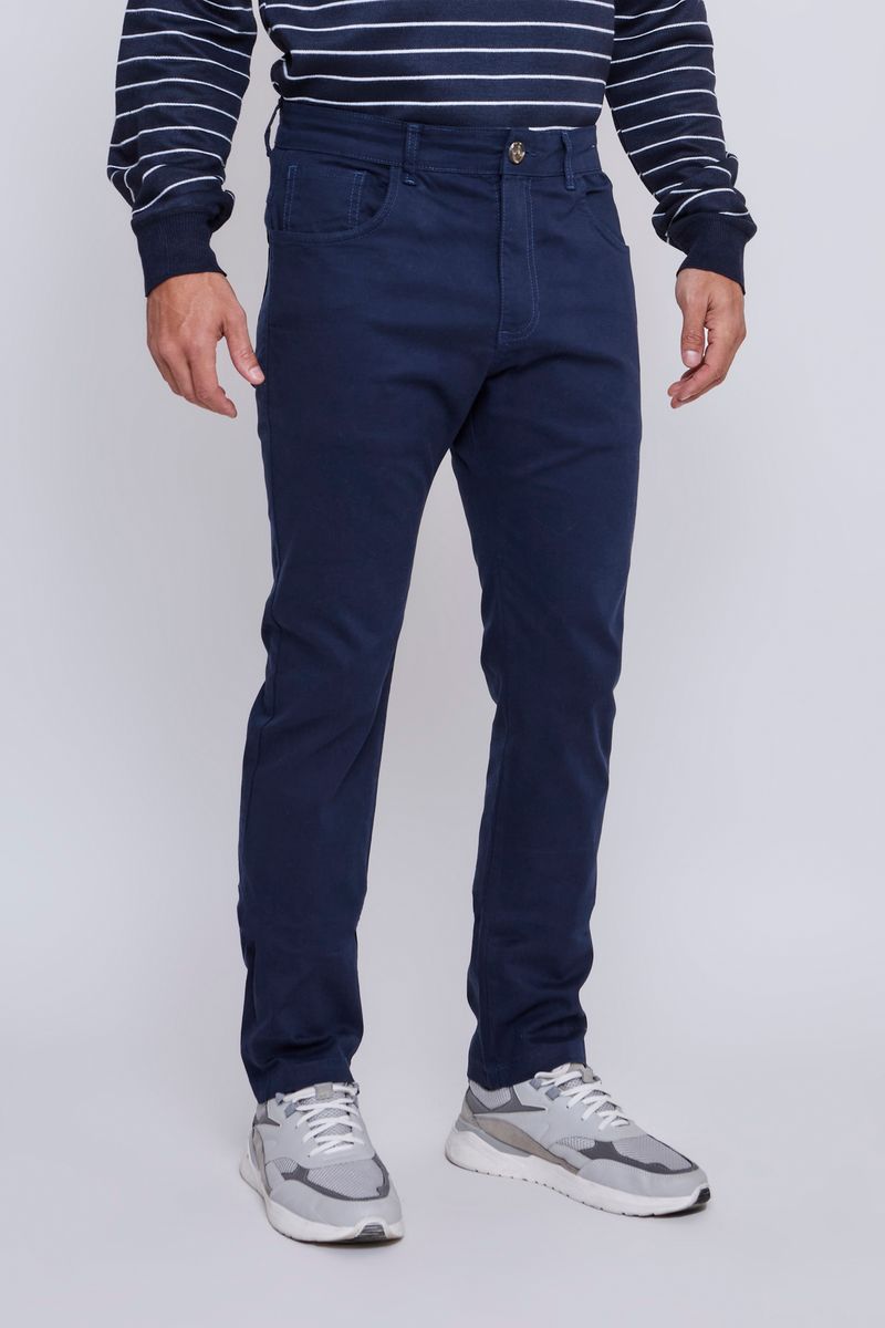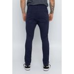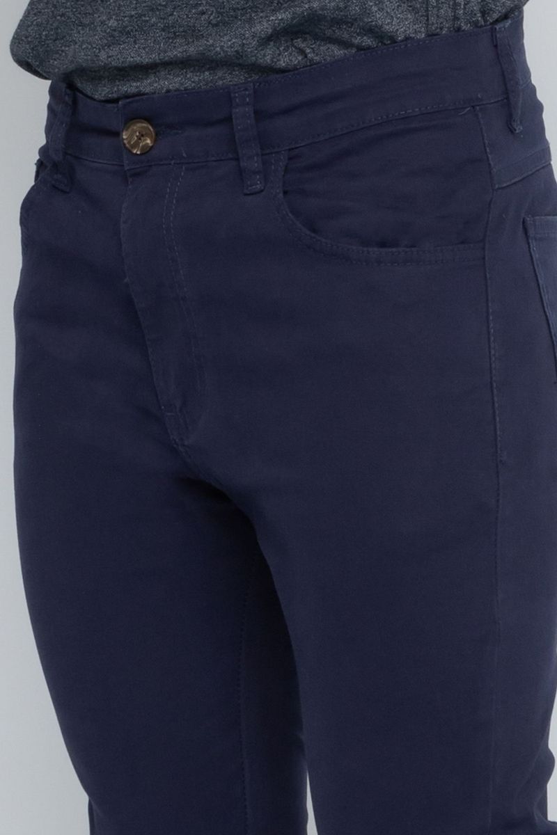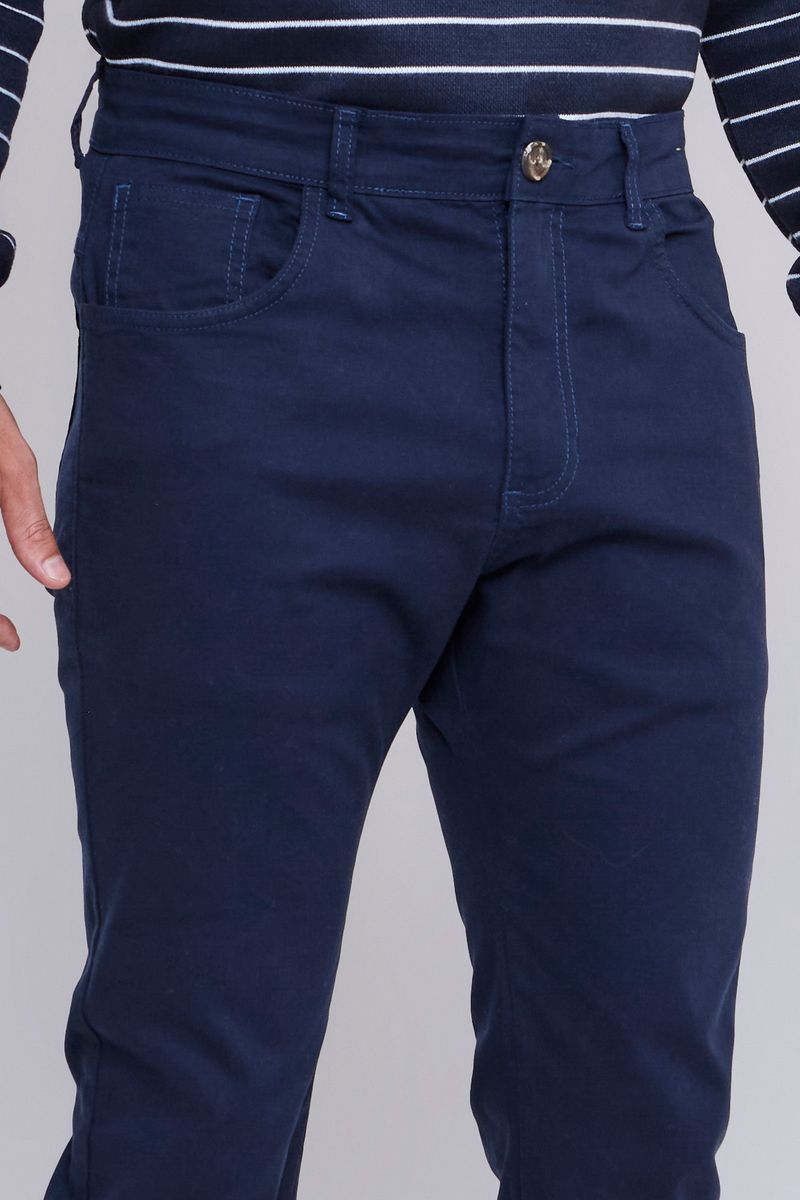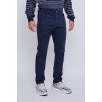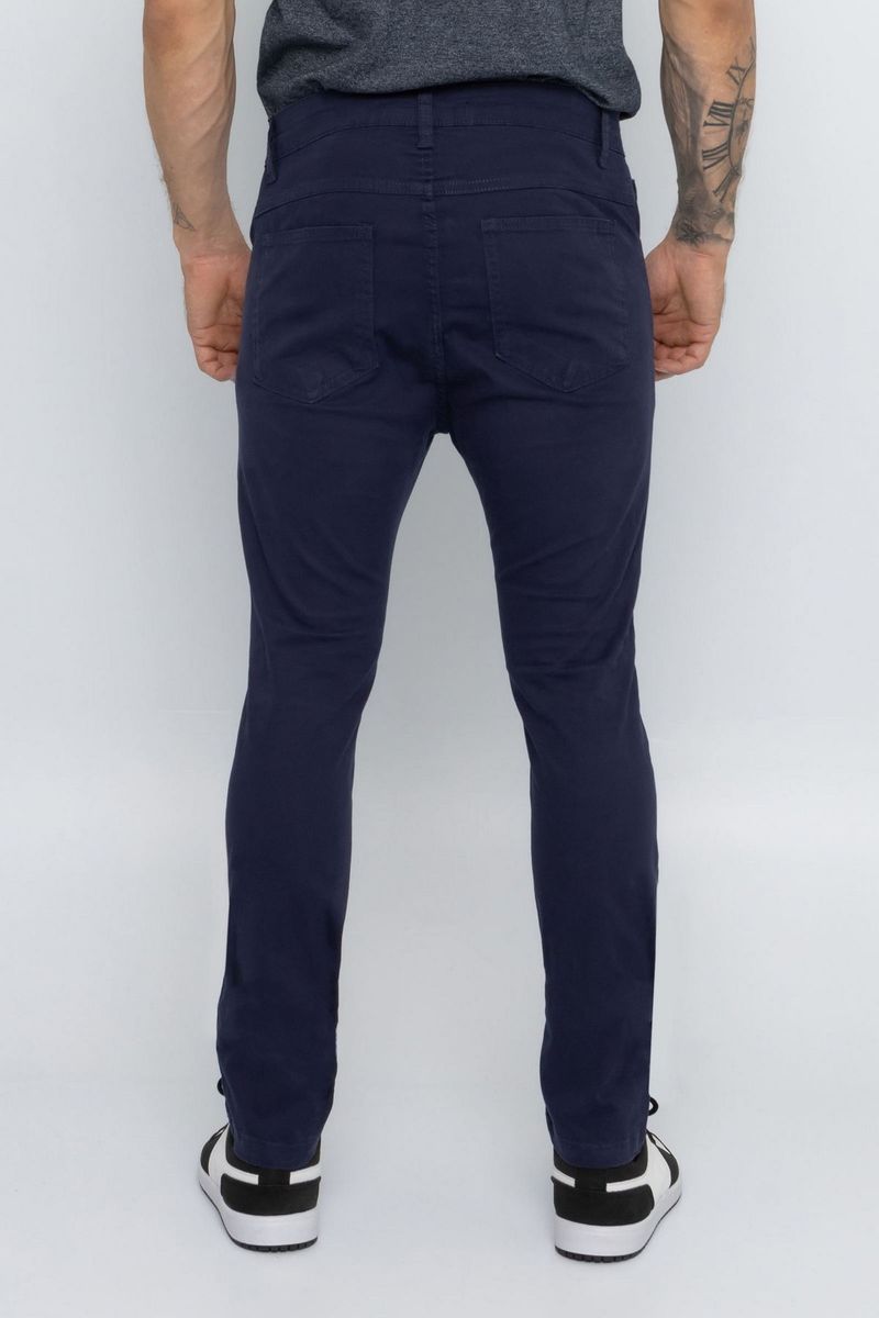 Calça masculina casual, modelagem skinny com caimento ajustado ao corpo. A peça possui fechamento por zíper e botão, bolsos frontais e traseiros.
