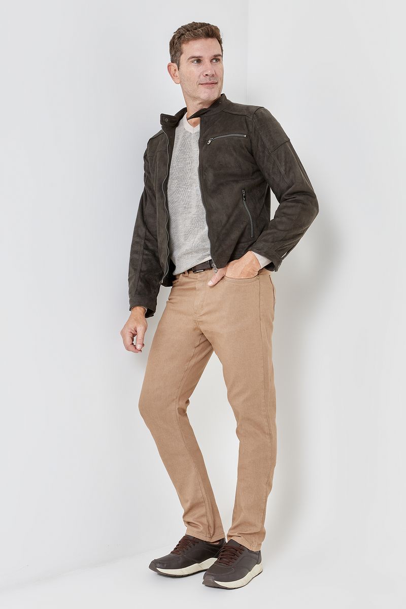 Eleve seu estilo com a Calça Masculina Slim Five Sarja Marrom da Caedu. Confeccionada em 100% algodão, oferece conforto e caimento perfeito. Ideal para um visual moderno e versátil, esta roupa é a escolha certa para quem busca qualidade e moda.