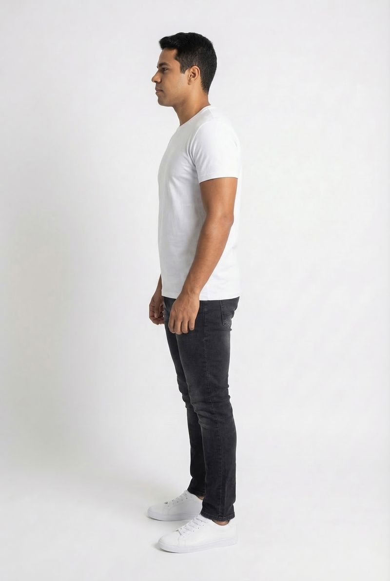 Combine sua calça jeans preta com camisetas básicas e tênis para um visual casual. Para um estilo mais sofisticado, use camisas de botão e sapatos sociais. Uma jaqueta jeans ou de couro complementa o look, criando um visual urbano e versátil para diferentes ocasiões.
