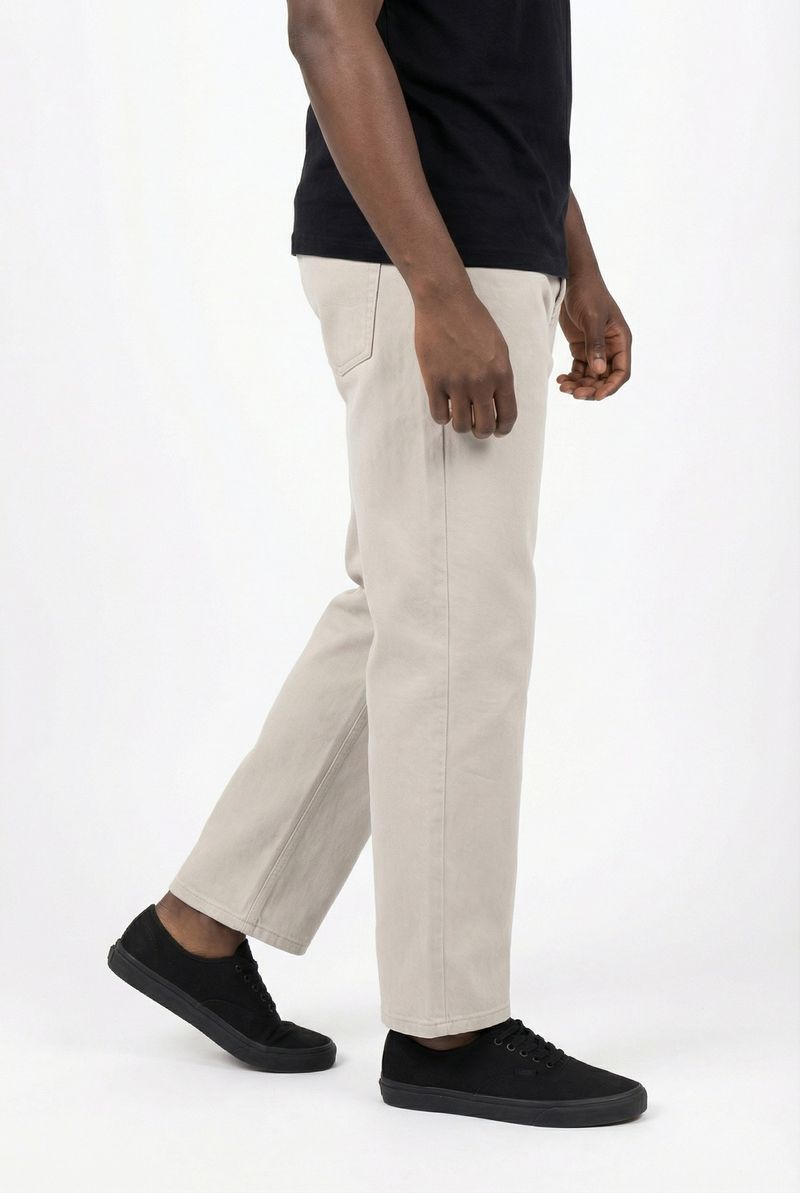 Experimente a Calça Masculina Baggy Conforto Caedu, a peça ideal para quem busca moda e bem-estar em sua roupa diária. Feita em denim 100% algodão na cor bege claro, oferece um caimento solto e estiloso, garantindo liberdade em cada movimento.