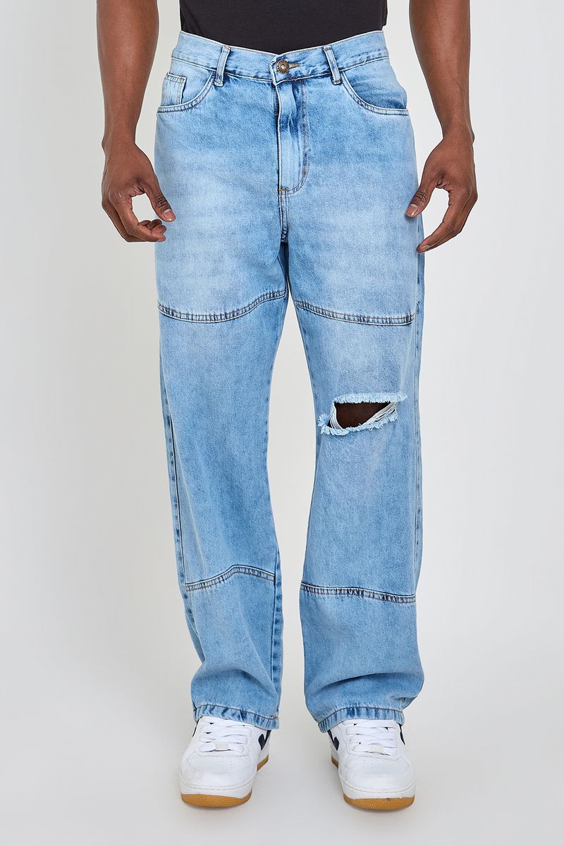 A Calça Jeans Masculina Baggy Trendy Caedu redefine seu estilo com um jeans claro e lavagem desbotada. Com recortes modernos e um rasgo no joelho, esta peça em DENIN oferece conforto e um visual autêntico. Perfeita para quem busca roupas de moda e um toque de originalidade.