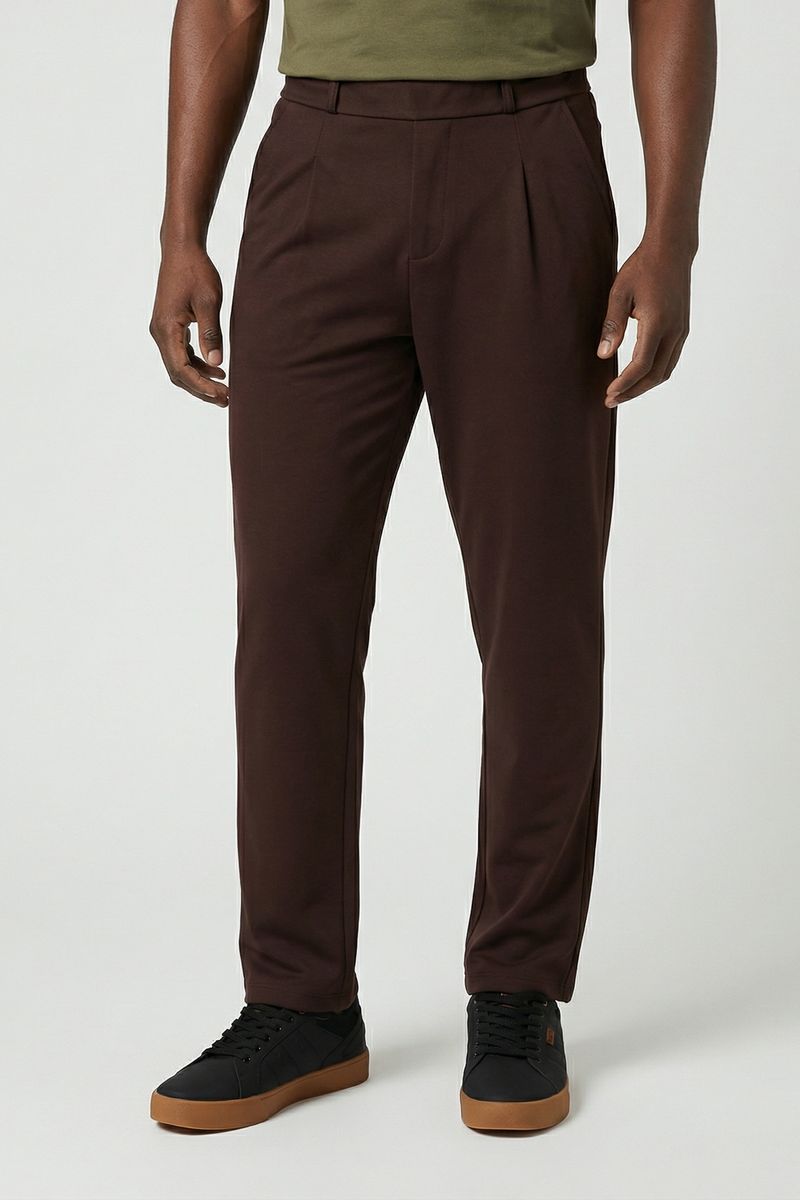 A Calça Masculina Caedu Trendy une conforto e estilo. Em marrom escuro e moletom sem felpa, seu caimento moderno que afunila nas pernas é perfeito para a moda masculina. Versatilidade para o seu guarda-roupa.