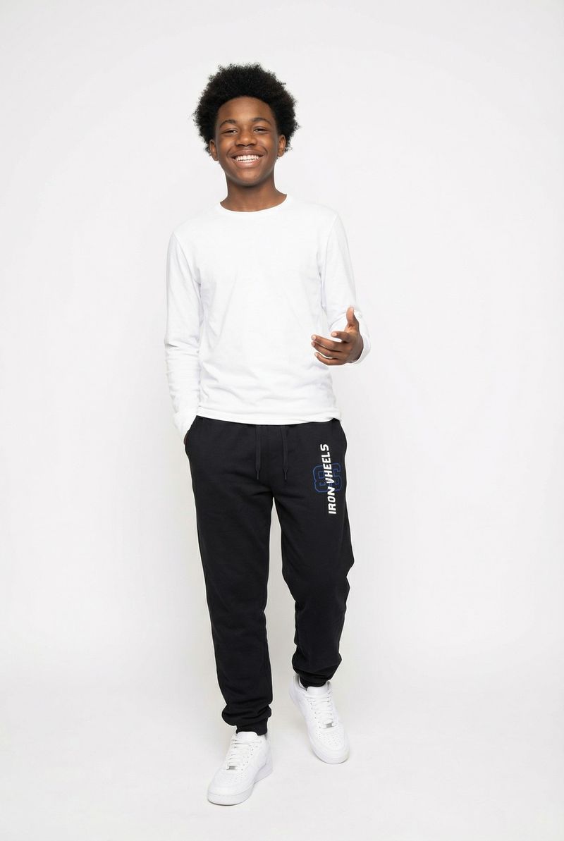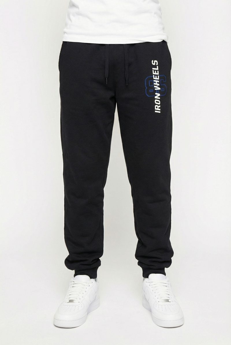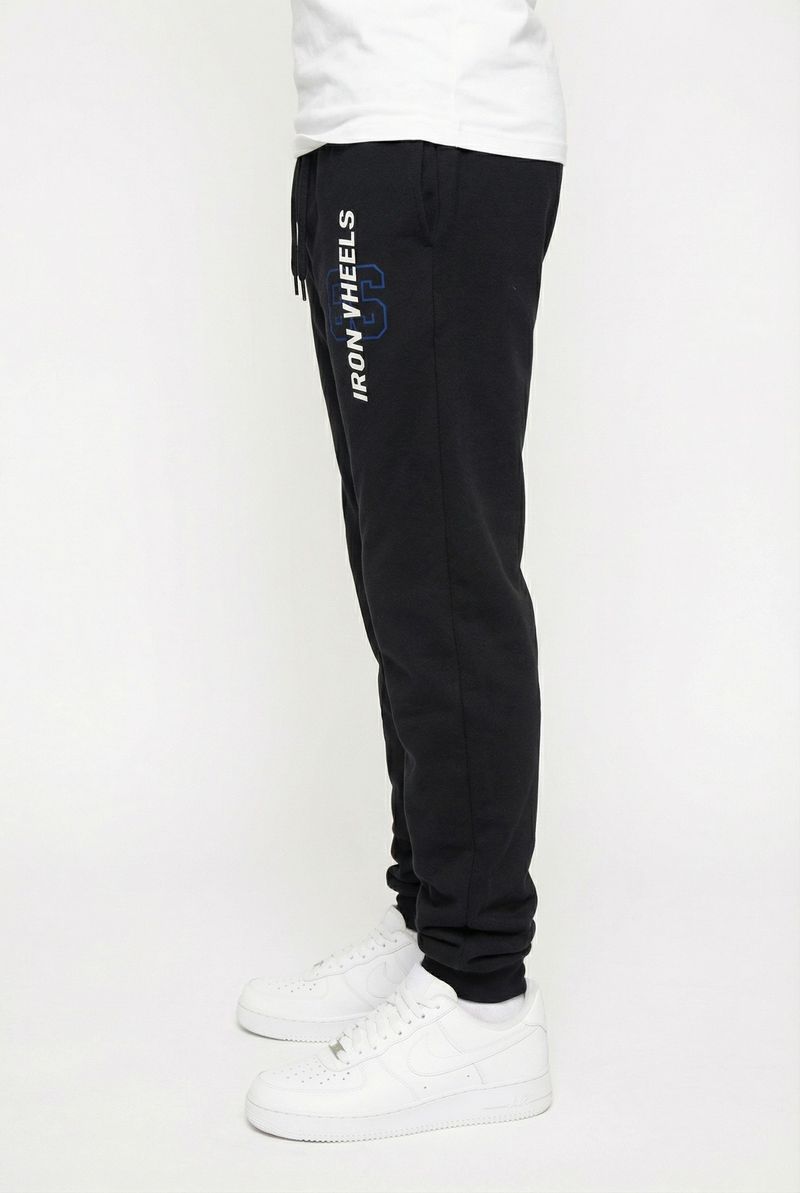 Combine sua Calça de Moletom Preta Iron Wheels com camisetas básicas ou estampadas para um look casual. Adicione um tênis moderno para um toque urbano. Para dias mais frescos, uma jaqueta jeans ou corta-vento complementa o visual com estilo e atitude.