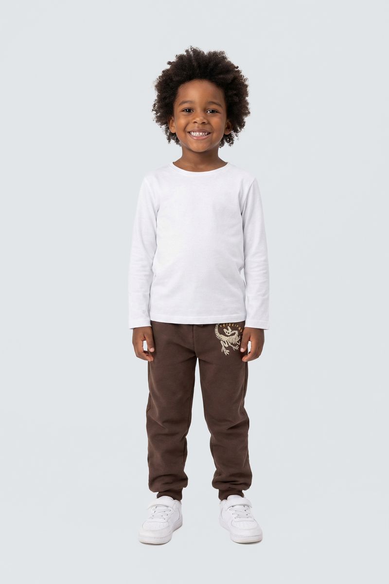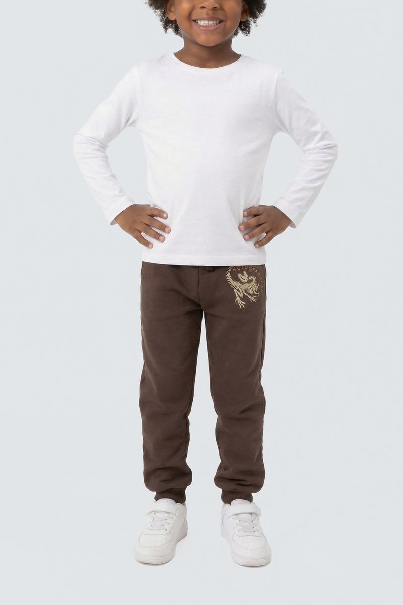 A Calça Moletom Infantil Dino Conforto Marrom Caedu é ideal. 100% poliéster, moletom sem felpa, conforto e durabilidade. Tom terroso marrom, super em moda, com estampa de dino, garante um visual moderno e divertido.