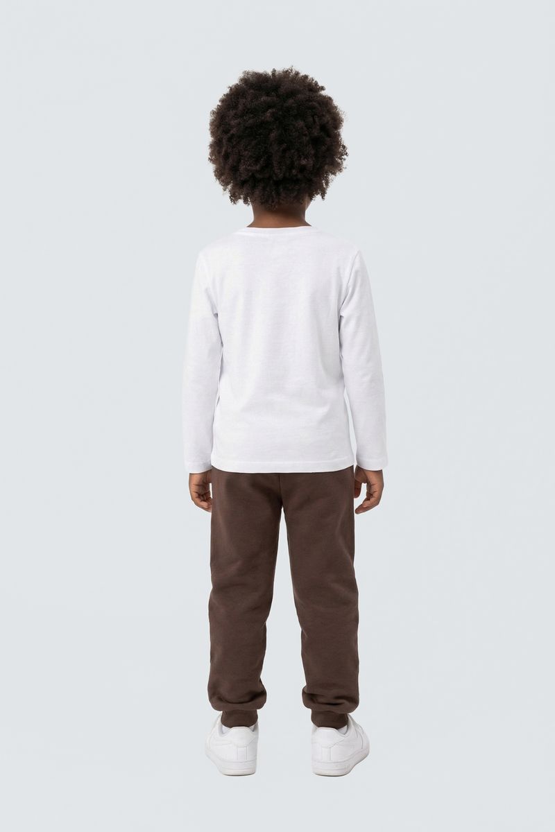 Combine esta calça de moletom marrom com blusas de manga longa claras ou camisetas estampadas para um look casual e divertido. Para os pés, tênis brancos ou coloridos complementam o visual com conforto. Adicione um casaco leve para dias mais frescos, criando um conjunto despojado e cheio de moda para os pequenos.