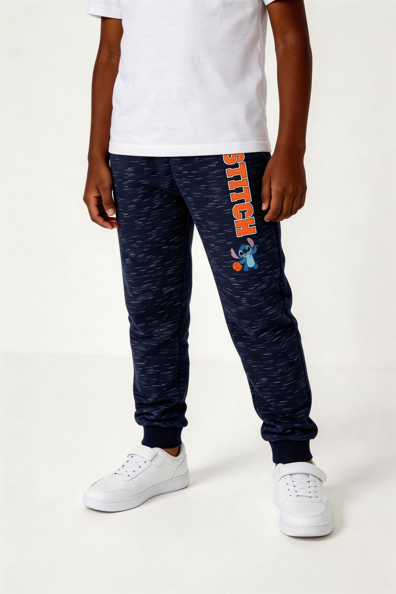 Detalhes: Cós e punhos elásticos, cordão para ajuste, estampa do personagem Stitch com bola de basquete