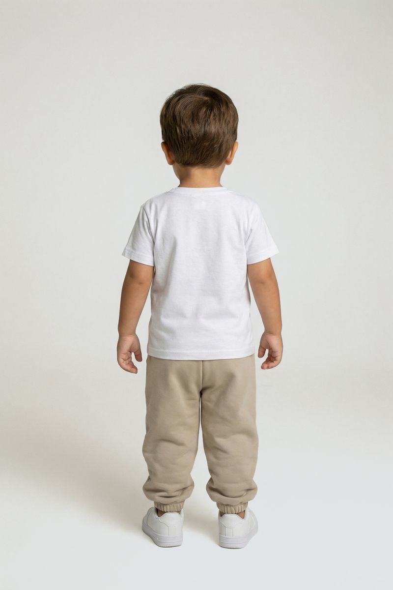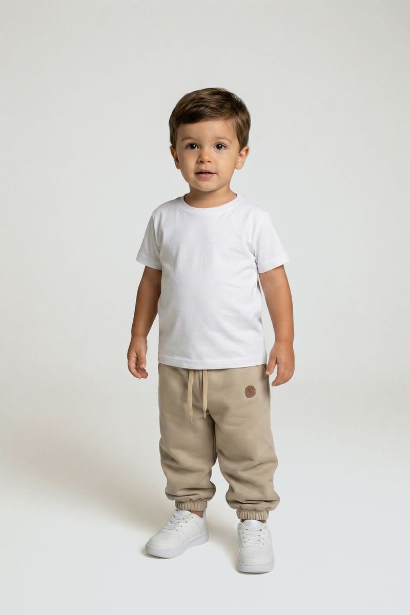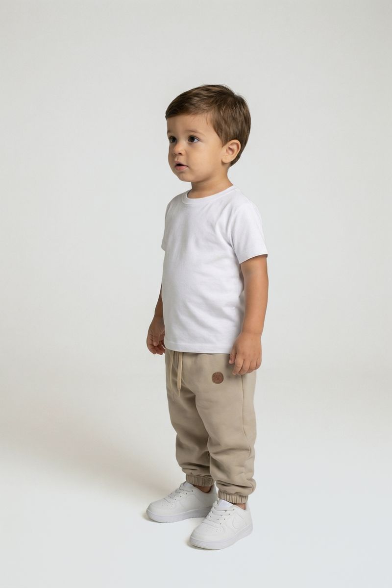 Combine esta calça jogger infantil com uma blusa branca básica para um visual clean e moderno. Para um toque extra de estilo, adicione um tênis branco de cano baixo. Em dias mais frescos, uma jaqueta jeans ou um casaco leve complementam o look com charme e conforto, criando um visual despojado e atual.