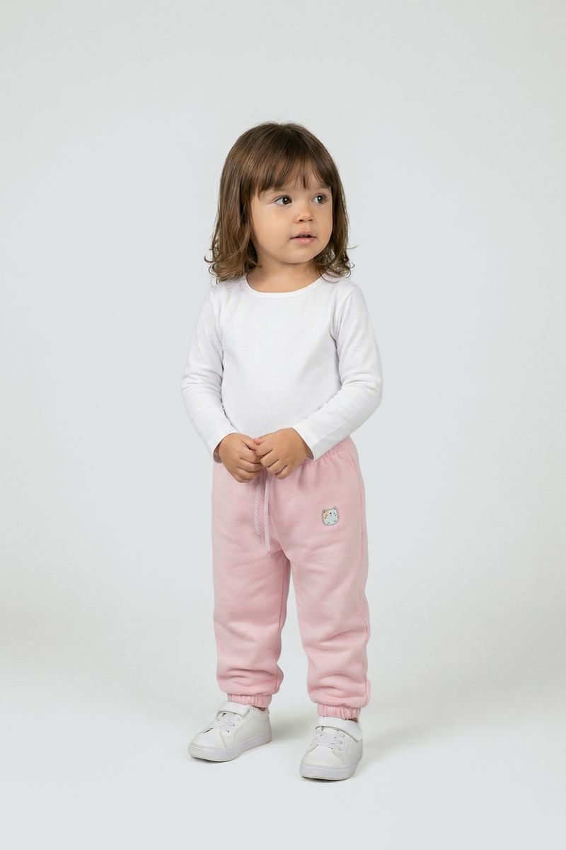A Calça Moletom Infantil Rosa Claro com Aplique de Bichinho Caedu oferece conforto e estilo para as pequenas. Confeccionada em moletom com felpa, possui um charmoso aplique de bichinho, cordão ajustável e barras elásticas, garantindo liberdade para brincar. Essencial na roupa infantil.