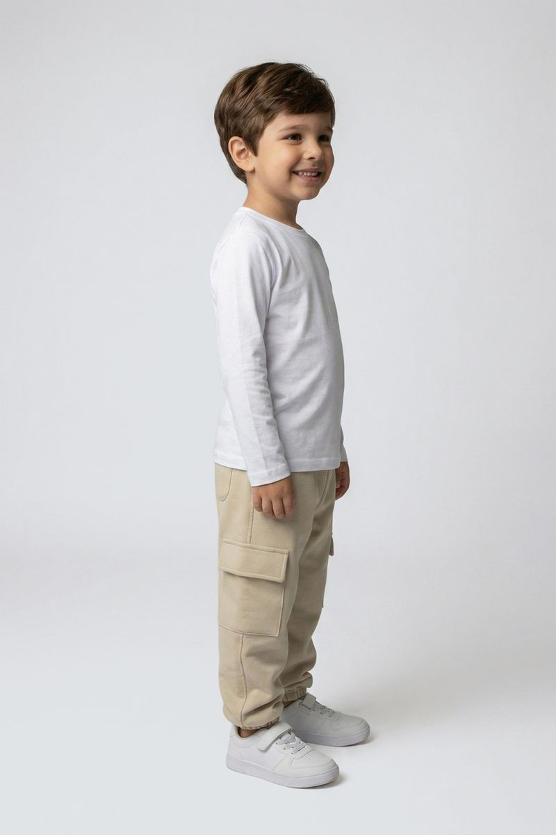 A Calça Cargo Infantil Caedu de Moletom Liso Bege Claro oferece conforto e estilo. Confeccionada em moletom com felpa, garante maciez. Seu tom bege claro, um terroso elegante, eleva a moda infantil, com um visual moderno e versátil.