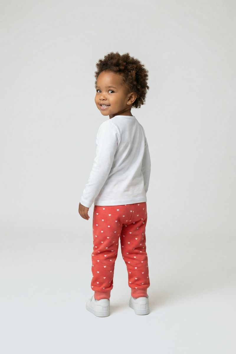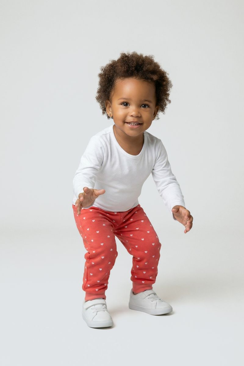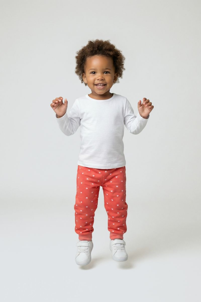 Combine a calça com blusas brancas ou de tons neutros para realçar o coral radiante. Para um look completo, adicione sapatos brancos e um casaco leve em dias mais frescos. É uma peça versátil que se adapta a diversos estilos, garantindo que as roupas da sua pequena sejam sempre cheias de personalidade e moda.