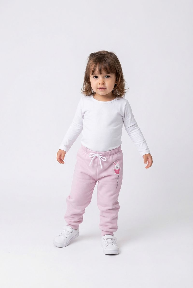 Apresentamos a Calça de Moletom Infantil Caedu, perfeita para a nova coleção de outono inverno. Confeccionada em 100% algodão com felpa, oferece máximo conforto e maciez. Seu tom rosa claro e o fofo bordado de coelho garantem um visual encantador e cheio de estilo para as pequenas.
