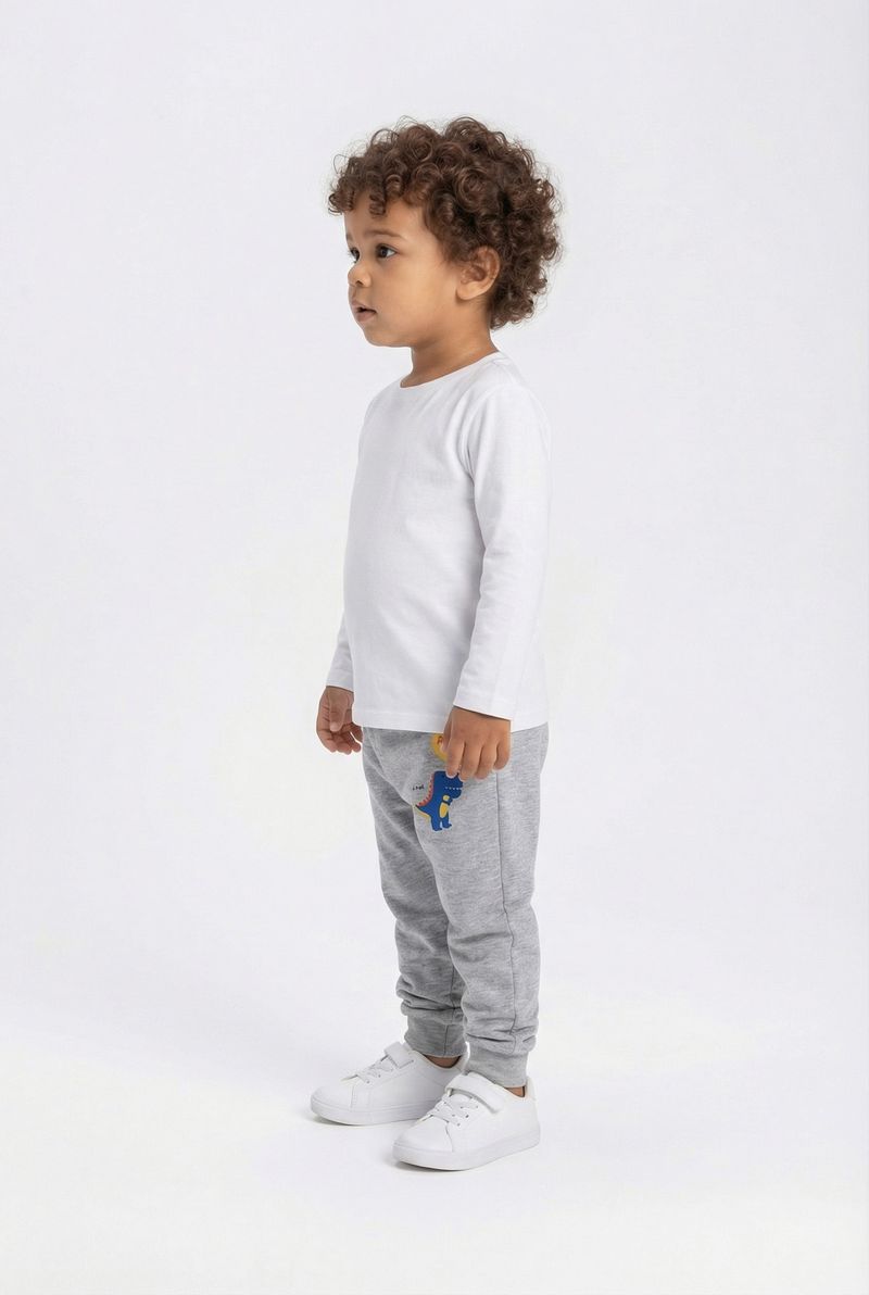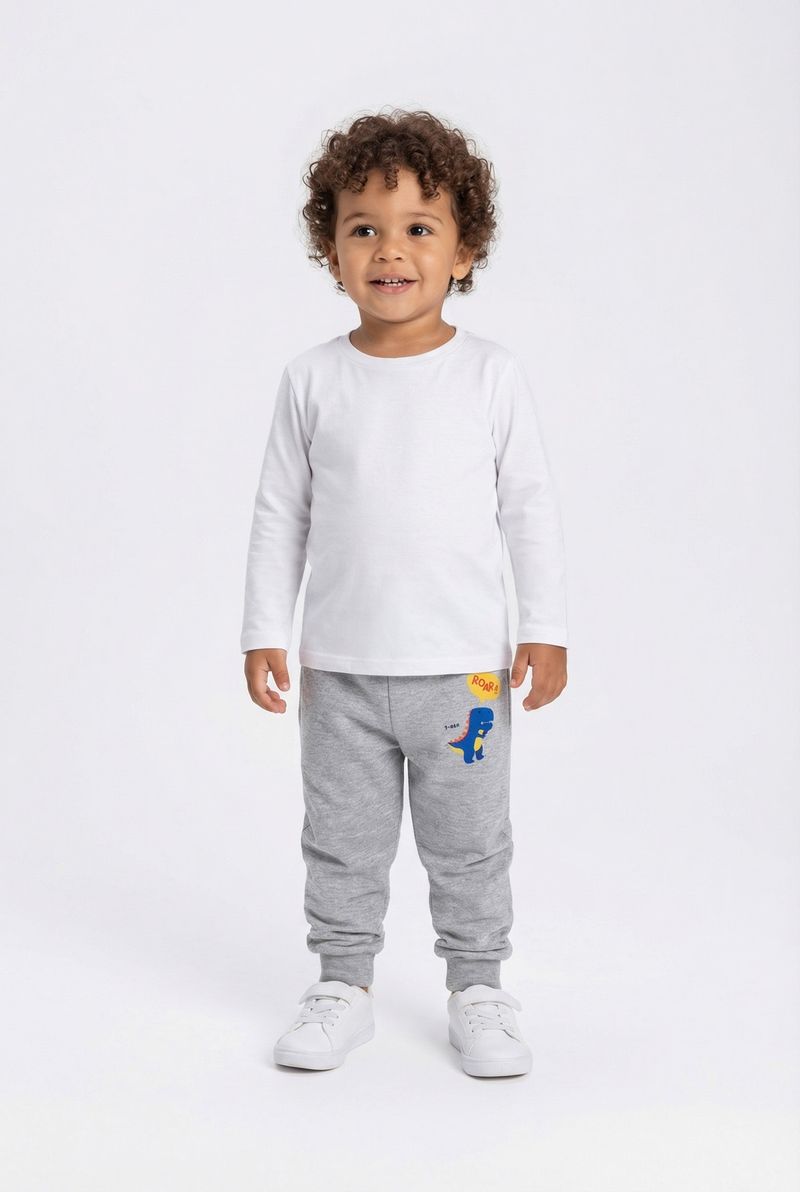 Combine a Calça Moletom Dino Roar com camisetas de manga longa lisas ou estampadas para um visual divertido. Para dias mais frios, adicione uma blusa de moletom ou jaqueta. Complete o look com tênis confortáveis para garantir que seu pequeno esteja pronto para qualquer brincadeira com muito estilo e liberdade.