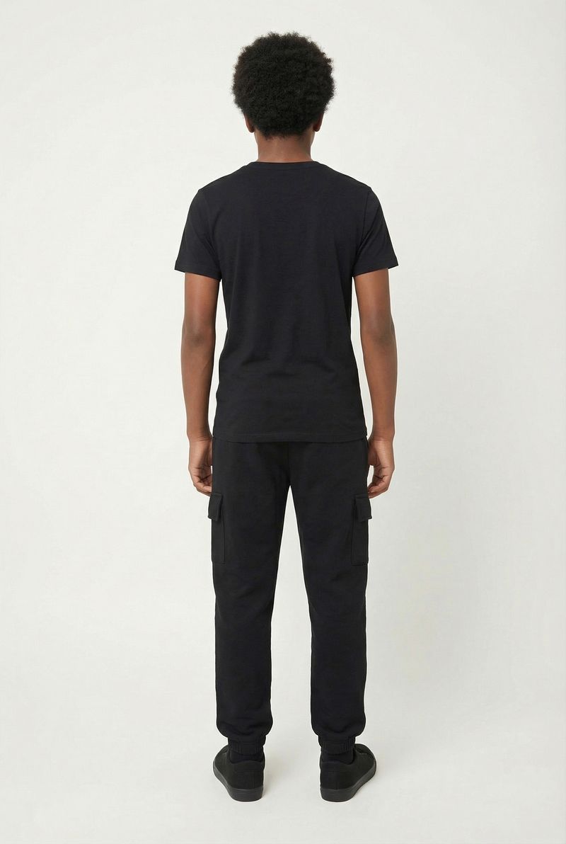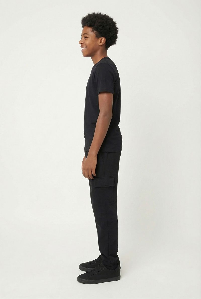 A Calça Jogger Cargo Juvenil Preta de Moletom Caedu, da nova coleção de outono inverno, oferece conforto e estilo. Em moletom com felpa, com bolsos cargo e punhos elásticos, é perfeita para a moda juvenil e roupas versáteis.