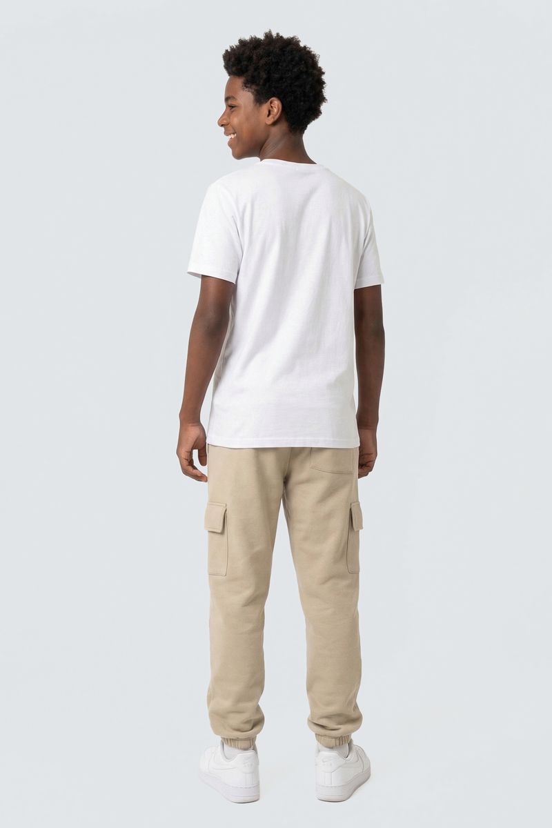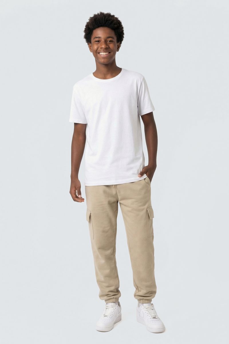 Combine sua Calça Cargo Jogger Juvenil bege com uma camiseta branca lisa para um look casual e despojado. Para um toque extra de estilo, adicione um tênis branco e uma jaqueta jeans. Experimente também com blusas de cores neutras ou vibrantes para criar composições únicas e cheias de personalidade, perfeitas para a moda jovem.