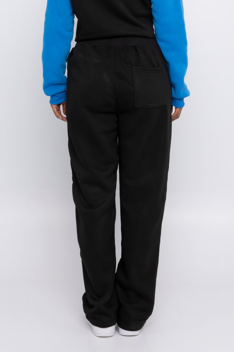 Calça feminina com modelagem reta, confeccionada em moletom. A peça possui cós com elástico e tiras para amarração.