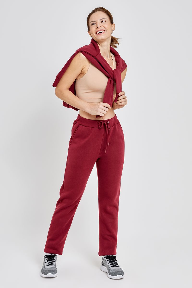 Calça Moletom Feminina Básica Caedu: Conforto e Estilo em Vermelho Escuro